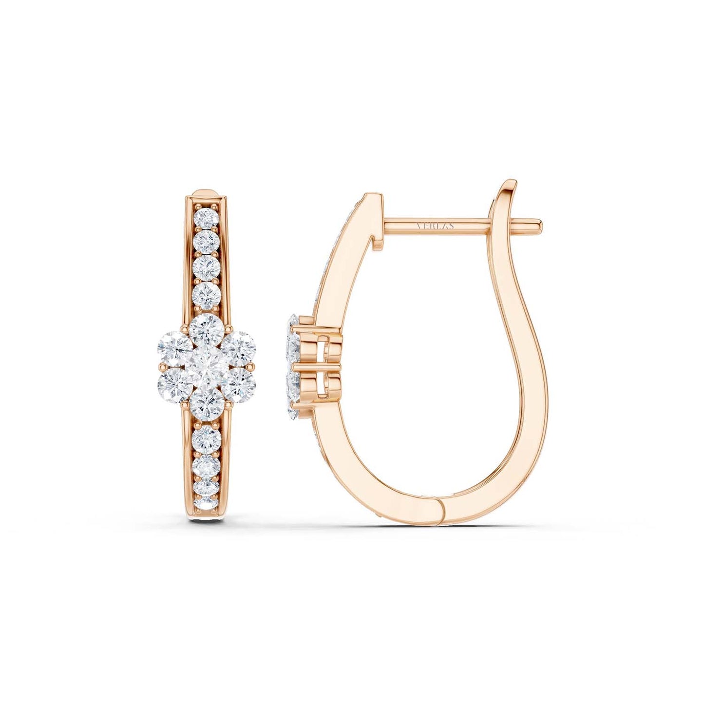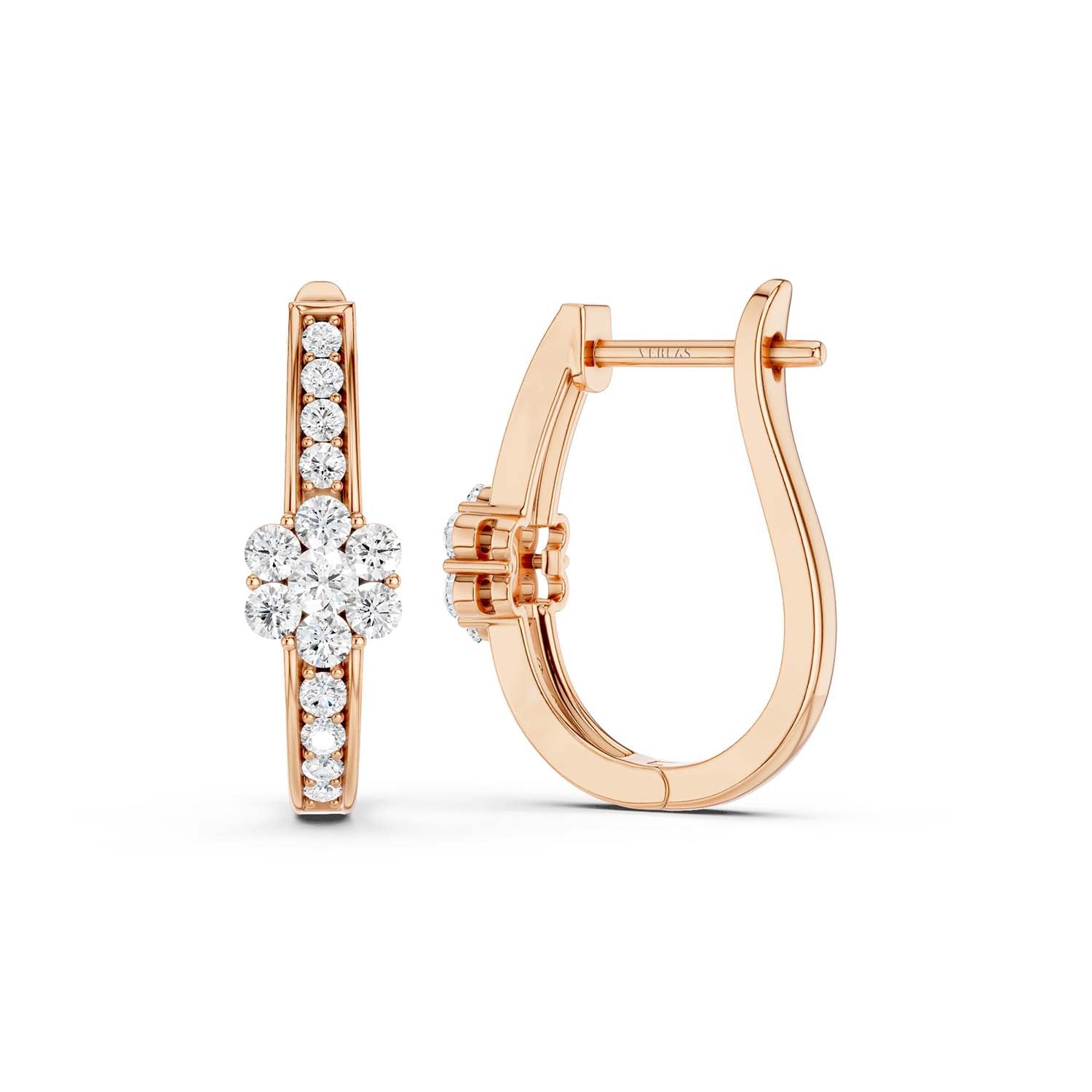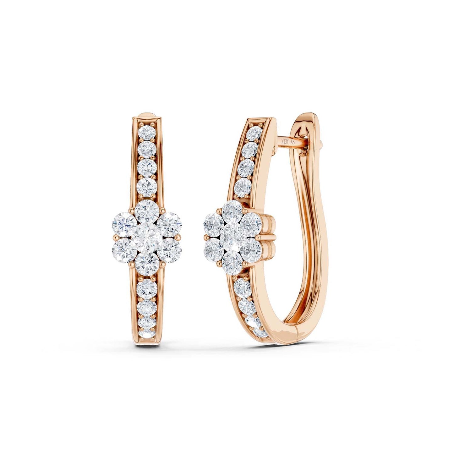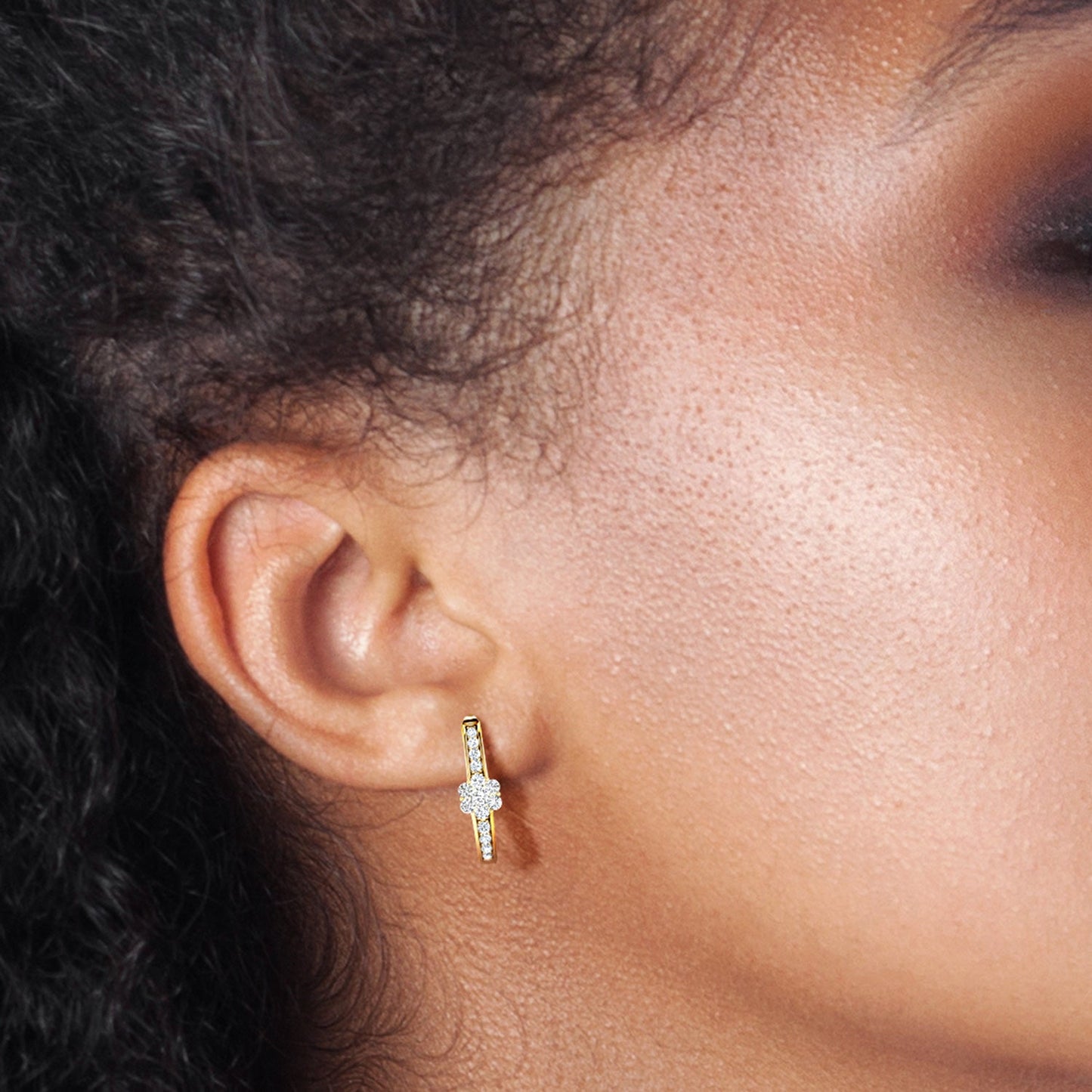 The Primrose Mini Hoops are cute and playful diamond hoop earrings that feature tiny flowers made of round diamonds. The hoops are crafted from solid gold and have hinged closures. These fun, feminine, and fantastic earrings will add that pizzazz to your look.