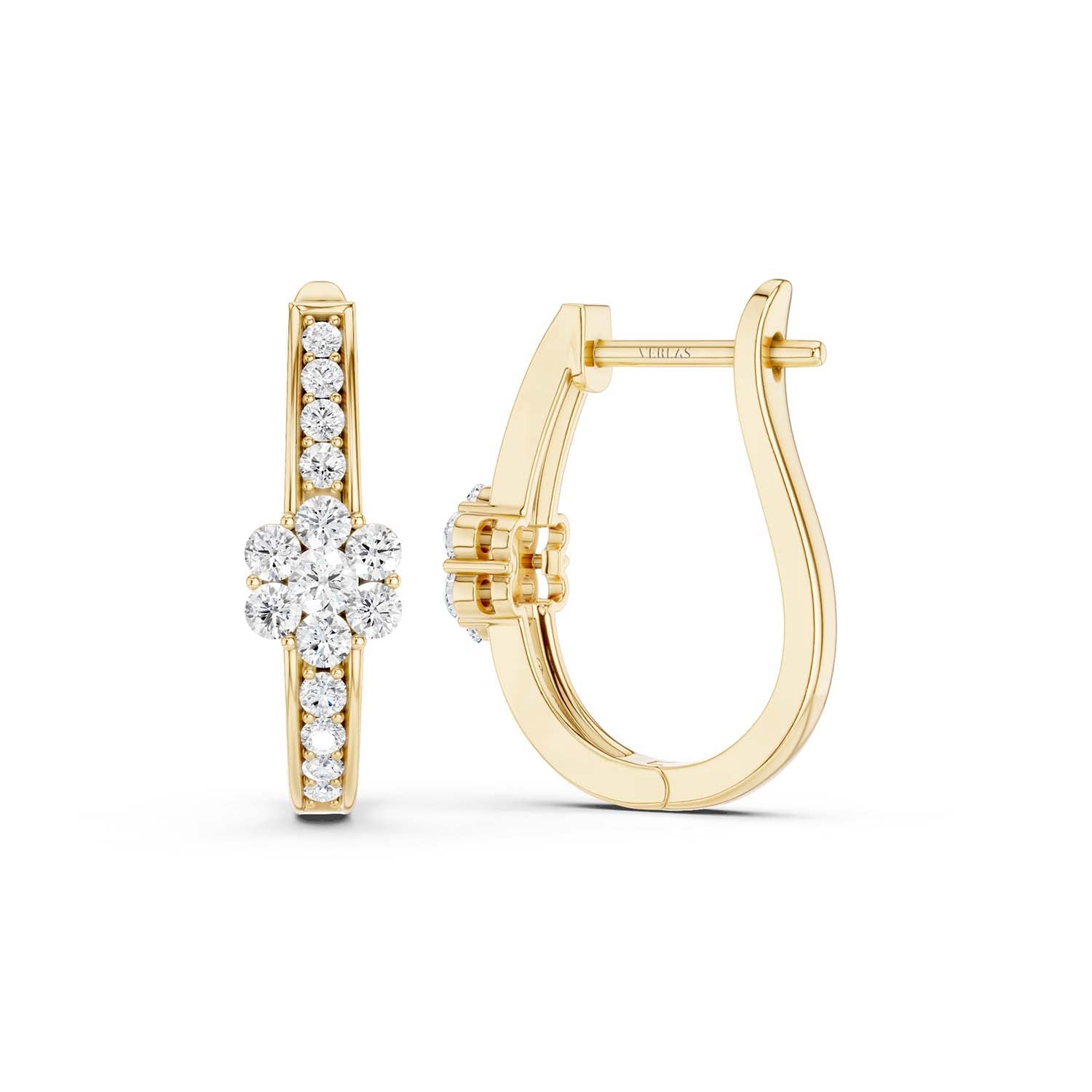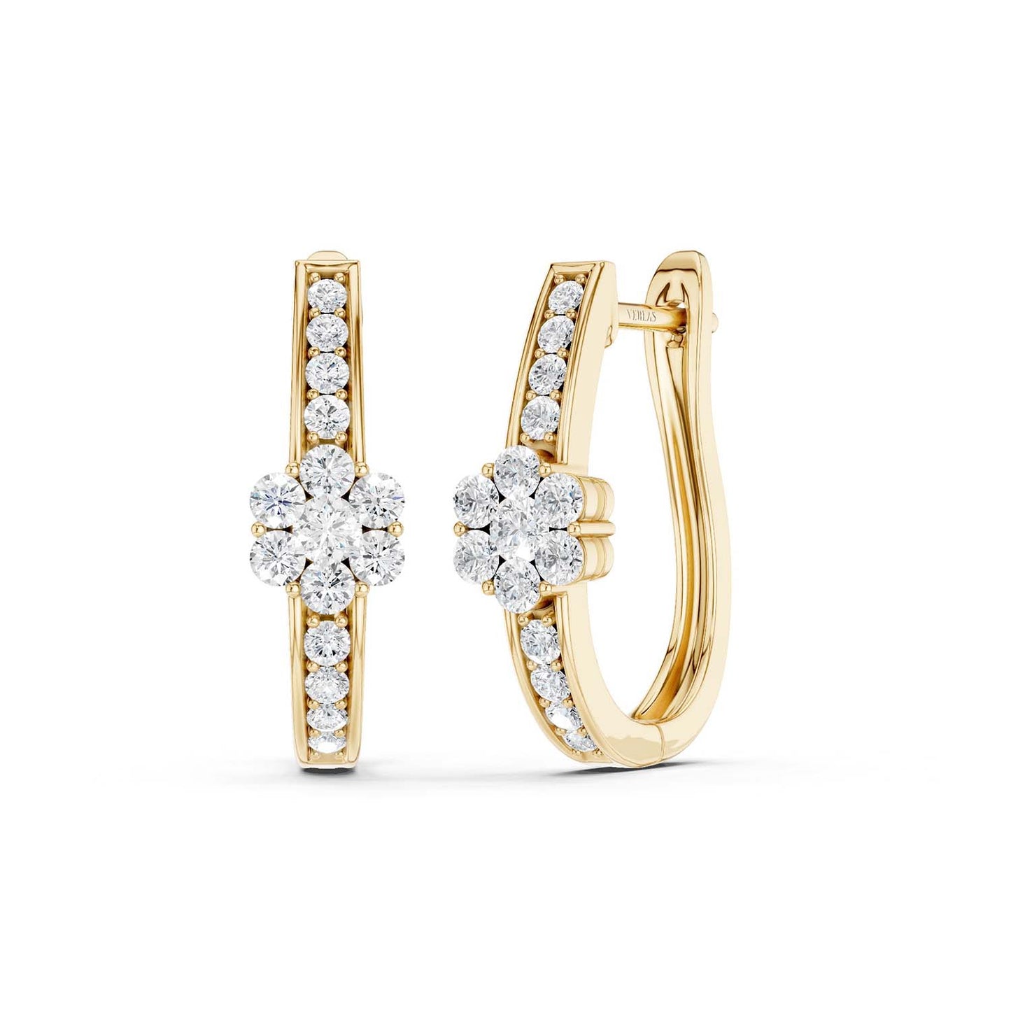 Read MoreThe Primrose Mini Hoops are cute and playful diamond hoop earrings that feature tiny flowers made of round diamonds. The hoops are crafted from solid gold and have hinged closures. These fun, feminine, and fantastic earrings will add that pizzazz to your look.
