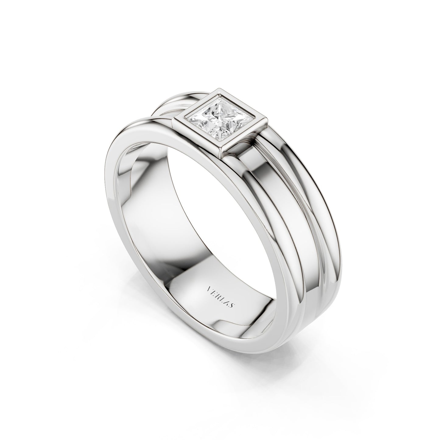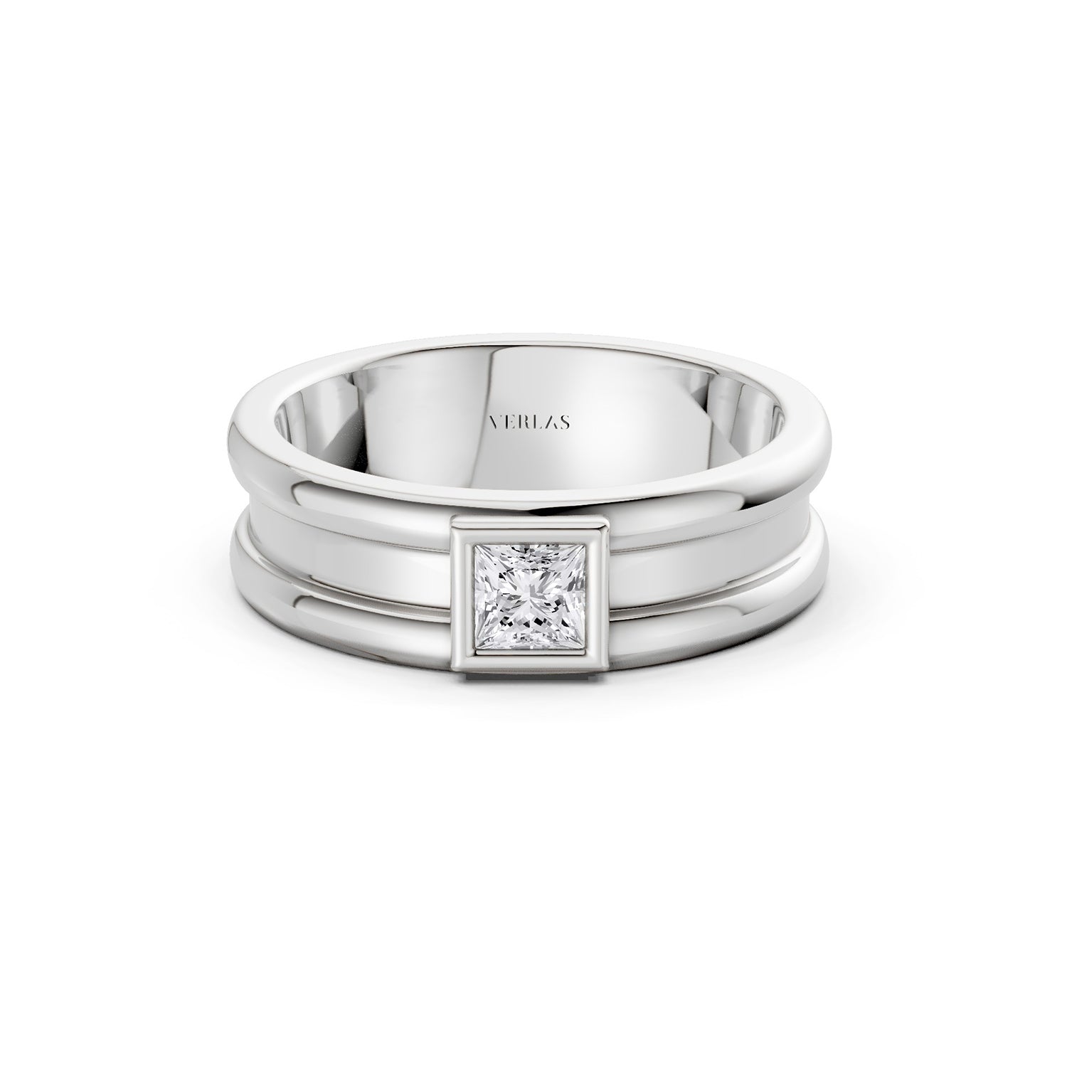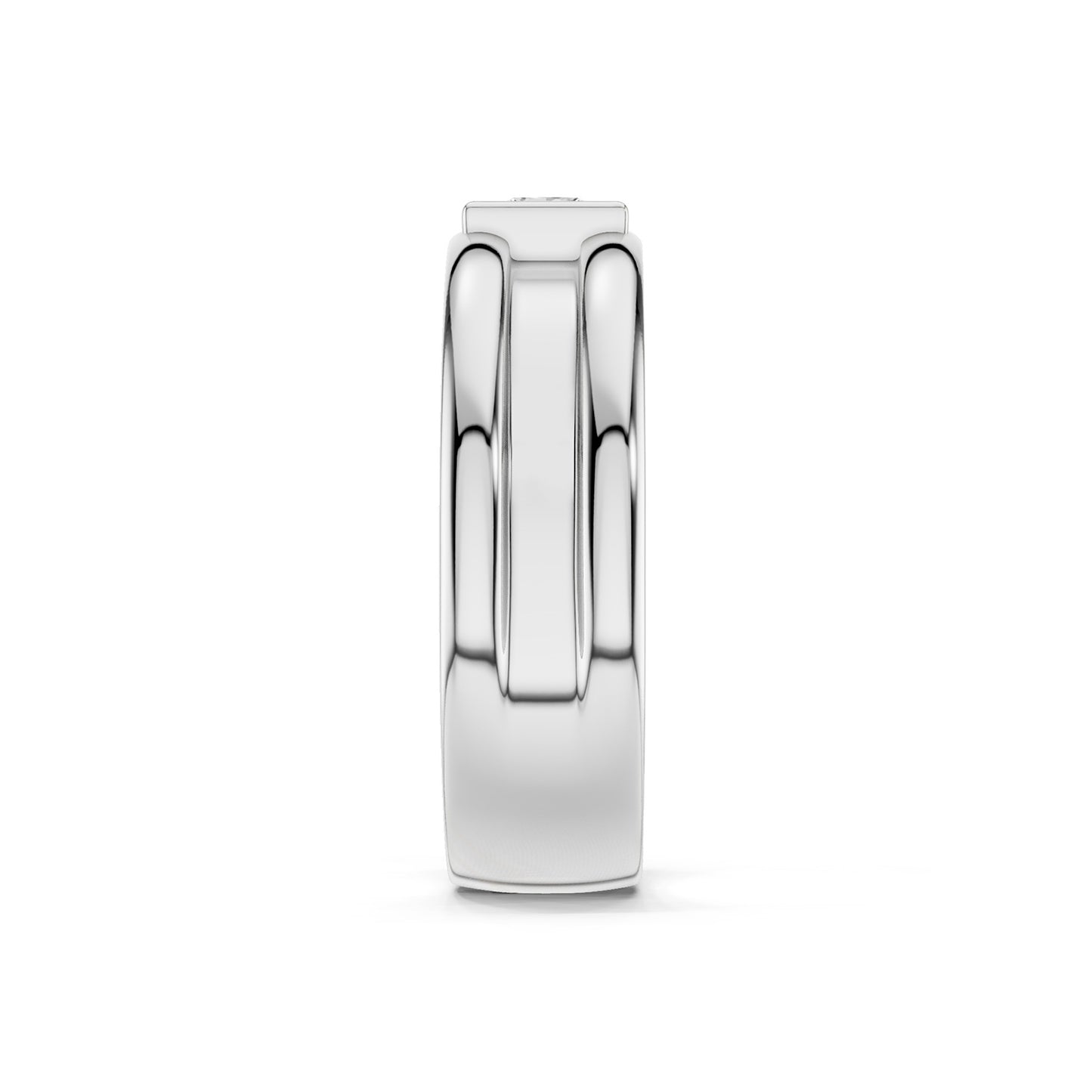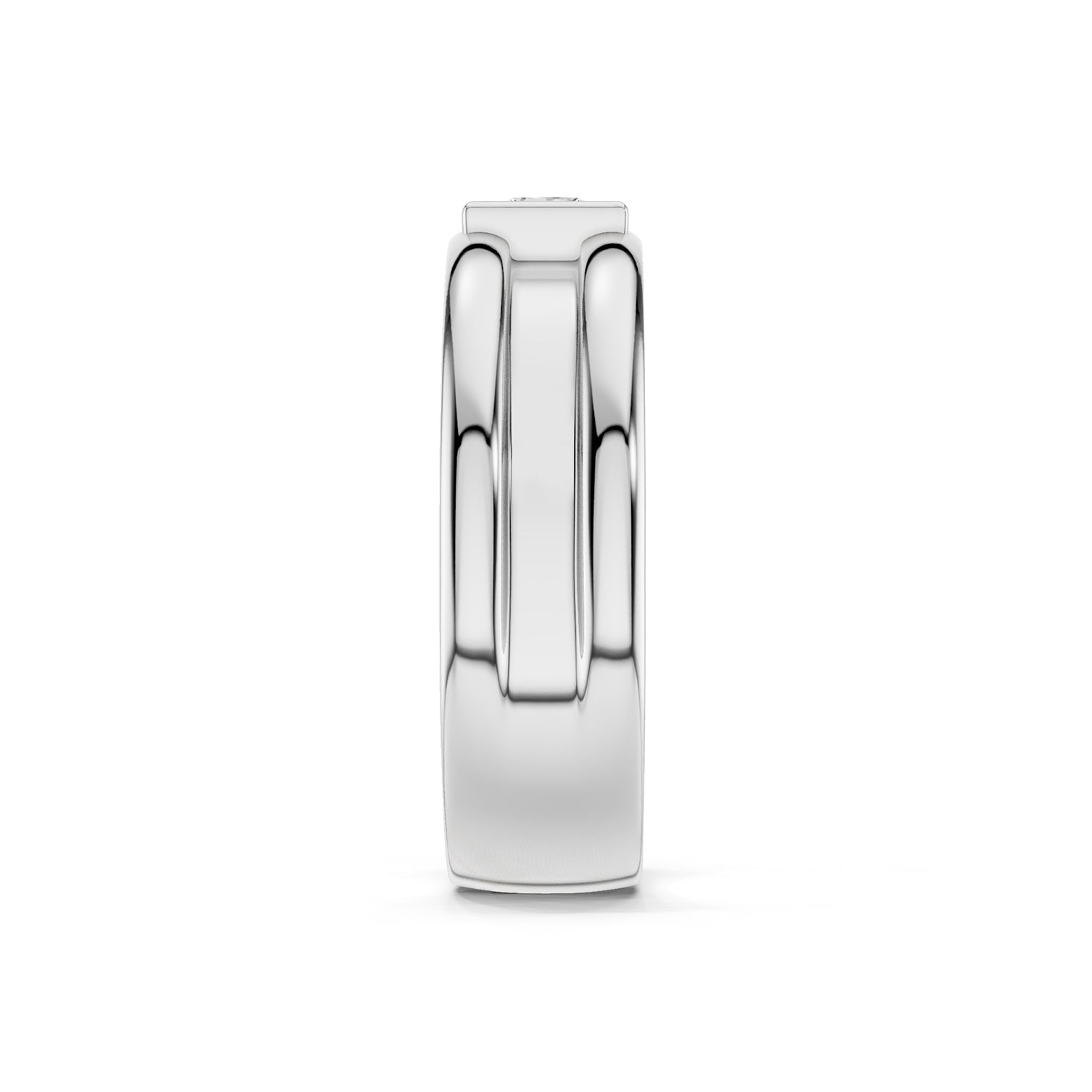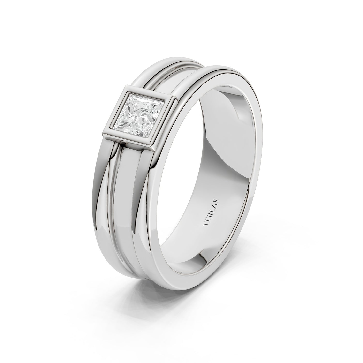 Crafted with precision and care, this wedding band seamlessly combines classic elegance with a modern edge. The princess-cut diamond, a timeless symbol of everlasting love, takes center stage, in this Princess Encompassing Groove Band. The defining feature of this diamond wedding ring is the enchanting groove that encircles the band. It symbolizes the unbroken bond of love and unity between two souls.