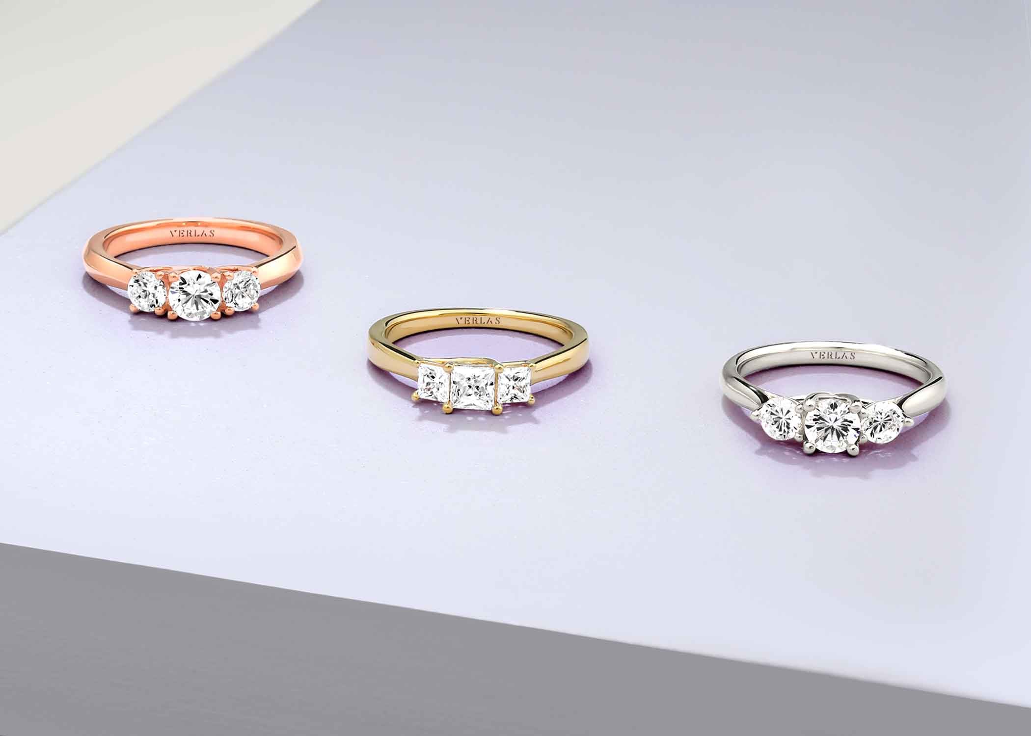 For those who believe love is built on shared past, present, and forever, the Three-Stone Diamond Engagement Ring, or the Trinity ring, as we like to call it, makes a meaningful choice. Its unique spread of diamonds forms a trinity of brilliance, representing the journey of two souls intertwined. Find your three-stone ring