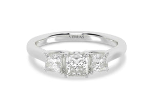 The Princess Vows diamond ring is classic, elegant, and iconic. It features three princess-cut diamonds placed next to each other on a gold ring in a prong setting. The princess vows design symbolizes love and commitment. The three princess-cut diamonds add sparkle and b. . . Read More
