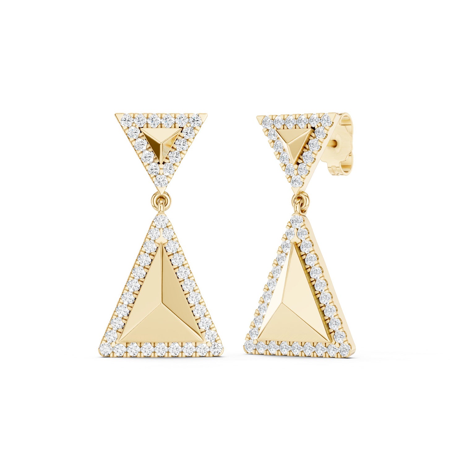 Transform your look with the Pyramid Luxe Contour Earrings, where modern design meets luxurious elegance. These stunning diamond earrings showcase a striking hourglass shape formed by two three-dimensional pyramids elegantly joined at their tip. The textured surface adds depth and interest, while sparkling lab-grown diamonds adorn the design, infusing it with a captivating brilliance. Perfect for elevating both everyday and special occasion outfits, these earrings are not just accessories—they’re statements of style and sophistication. The combination of geometric forms and shimmering diamonds creates an eye-catching effect that is sure to turn heads.