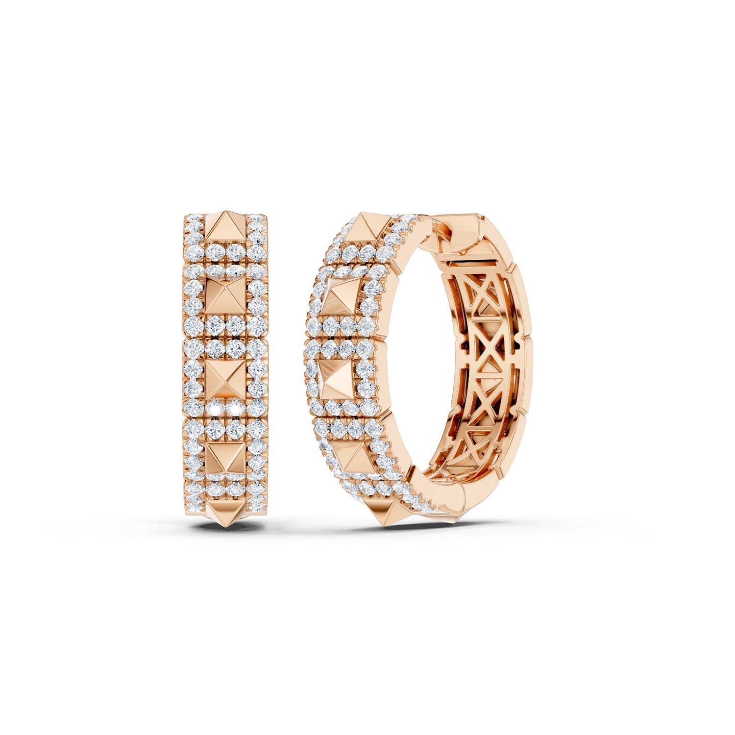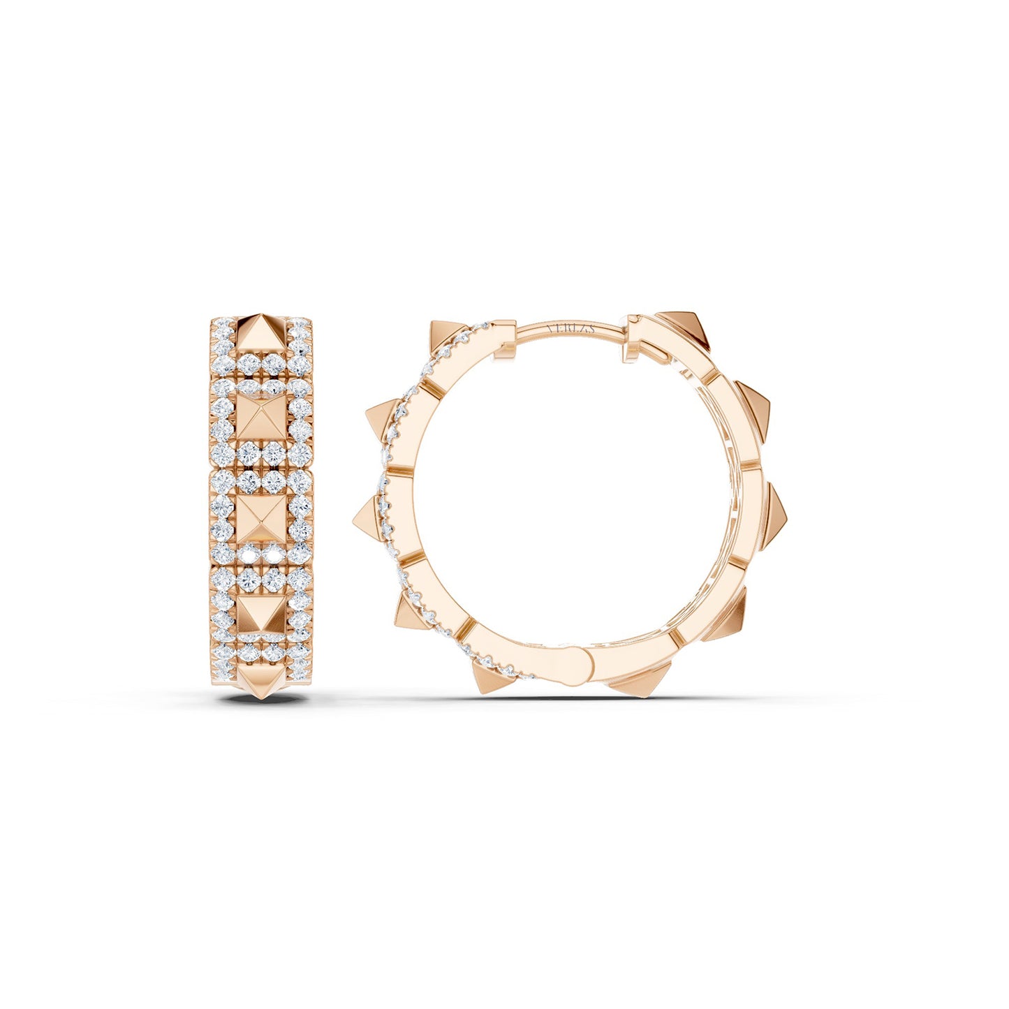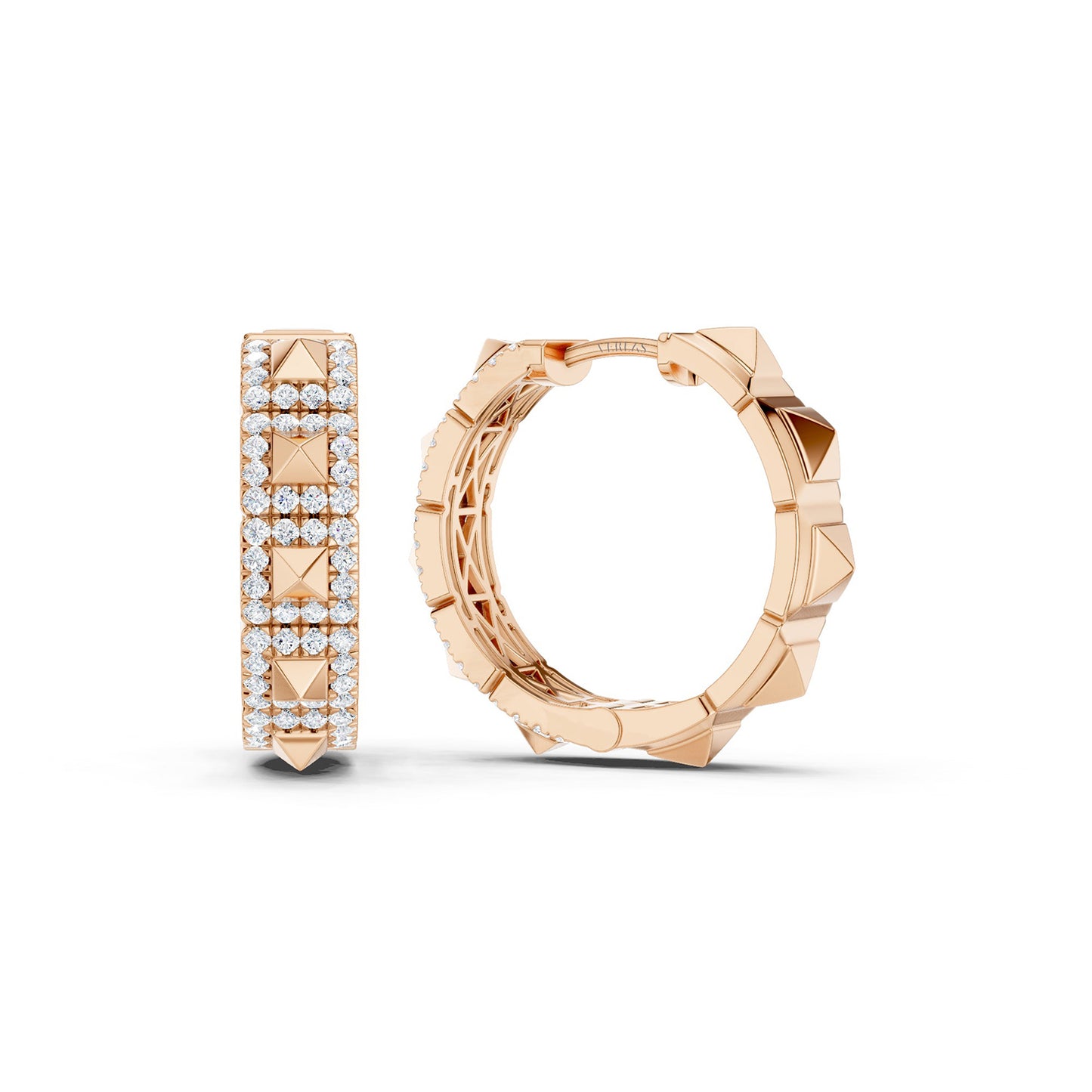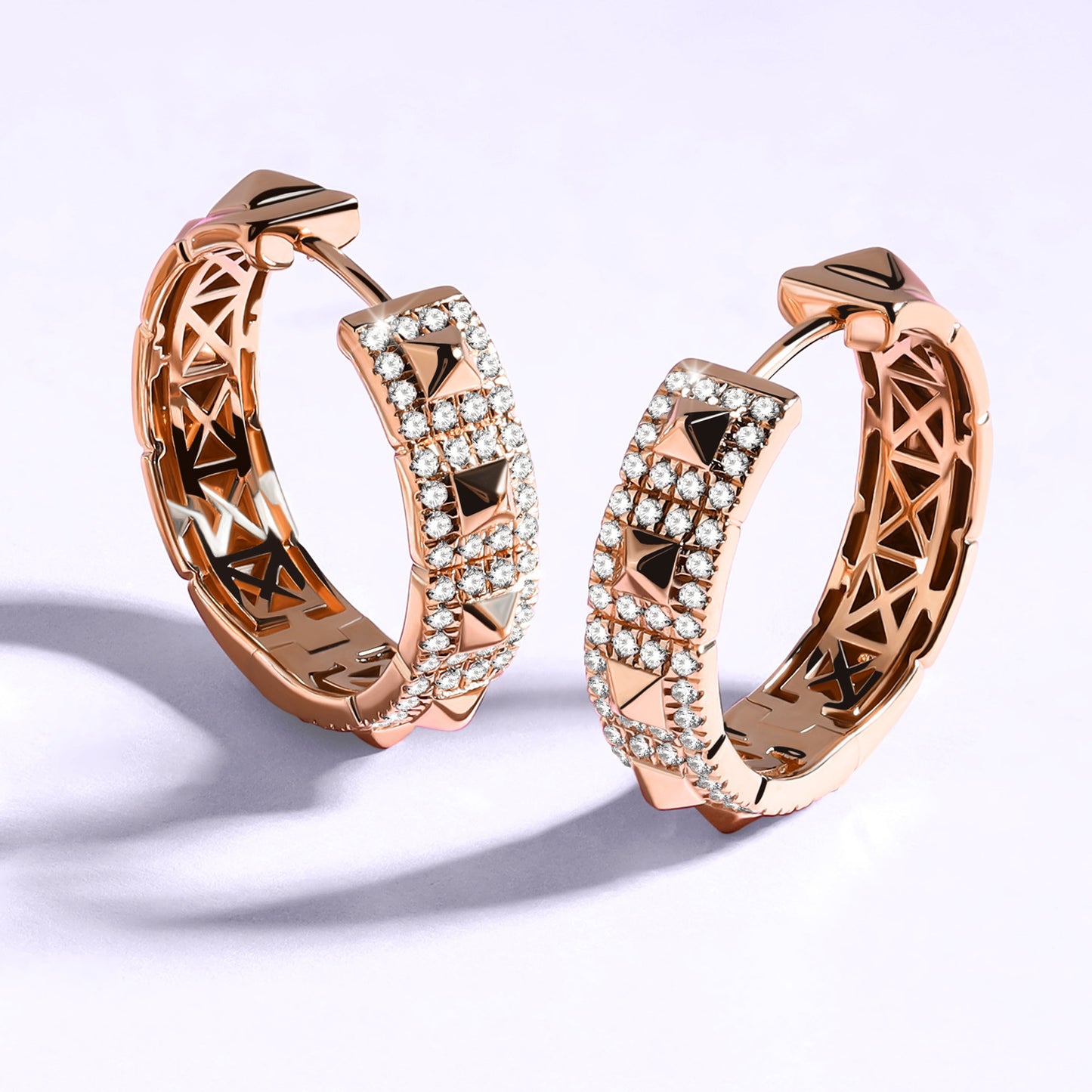 Step into the spotlight with the Pyramid Luxe Geometric Huggies, a stunning fusion of contemporary elegance and timeless beauty. These exquisite diamond huggie hoops showcase a row of three-dimensional pyramids set within square-shaped settings, creating a unique geometric appeal that’s sure to turn heads. Each pyramid motif is surrounded by sparkling round lab-grown diamonds, enhancing the luxurious look and adding a touch of brilliance to your ensemble. Designed for both comfort and style, these huggie hoops are perfect for everyday wear or special occasions. Their secure closure ensures a snug fit, while the captivating design allows you to express your individuality effortlessly.