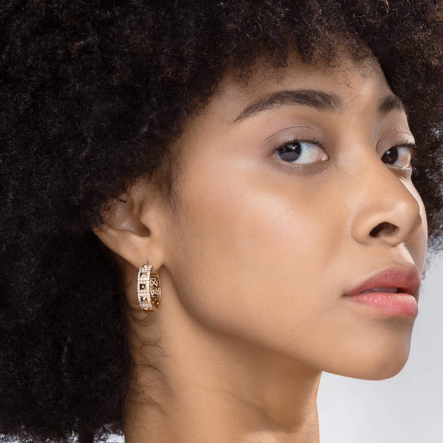 Step into the spotlight with the Pyramid Luxe Geometric Huggies, a stunning fusion of contemporary elegance and timeless beauty. These exquisite diamond huggie hoops showcase a row of three-dimensional pyramids set within square-shaped settings, creating a unique geometric appeal that’s sure to turn heads. Each pyramid motif is surrounded by sparkling round lab-grown diamonds, enhancing the luxurious look and adding a touch of brilliance to your ensemble. Designed for both comfort and style, these huggie hoops are perfect for everyday wear or special occasions. Their secure closure ensures a snug fit, while the captivating design allows you to express your individuality effortlessly.