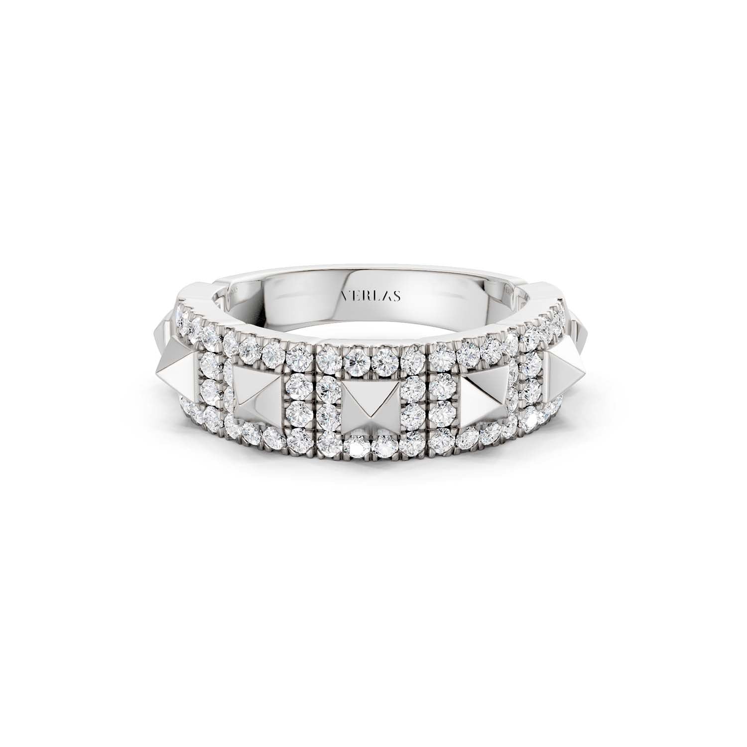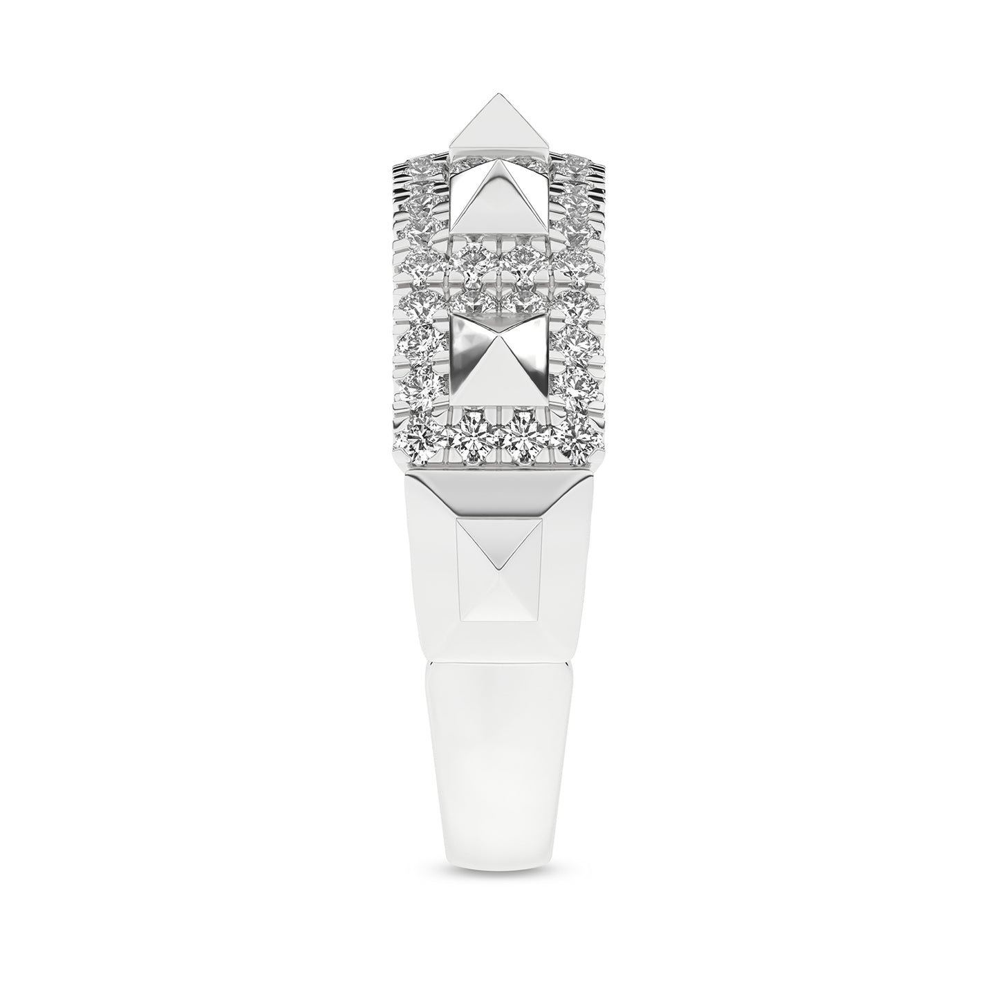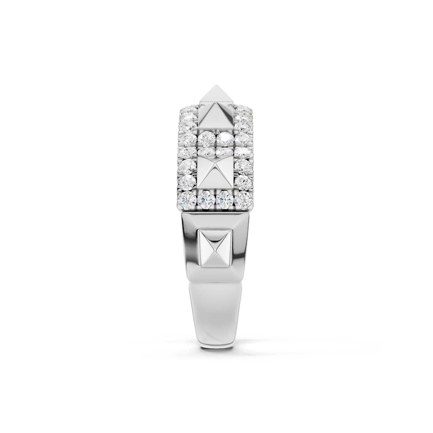 Understated yet elegant, the Pyramid Luxe Geometric Sleek Band offers a refined take on everyday luxury. Featuring a delicate row of three-dimensional pyramid motifs, meticulously encrusted with sparkling lab-grown diamonds, it exudes a subtle shimmer that complements any look. The unique geometric elements deliver a modern edge, making this band a statement of individuality. Ideal for those seeking a chic, contemporary look with a classic edge, this diamond band makes a sleek, luxurious statement. The sleek profile ensures a timeless charm that pairs effortlessly with any outfit.