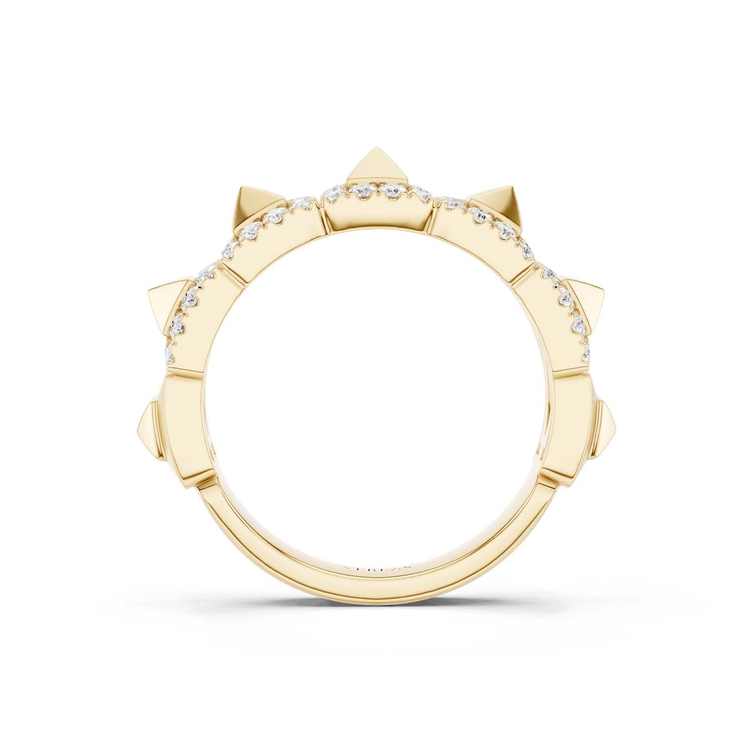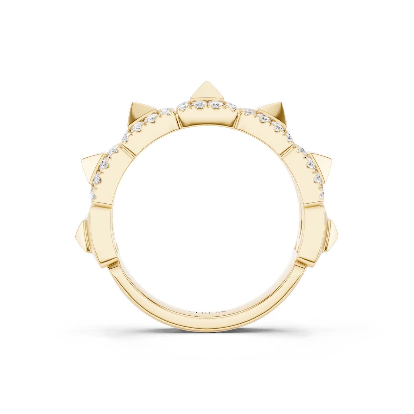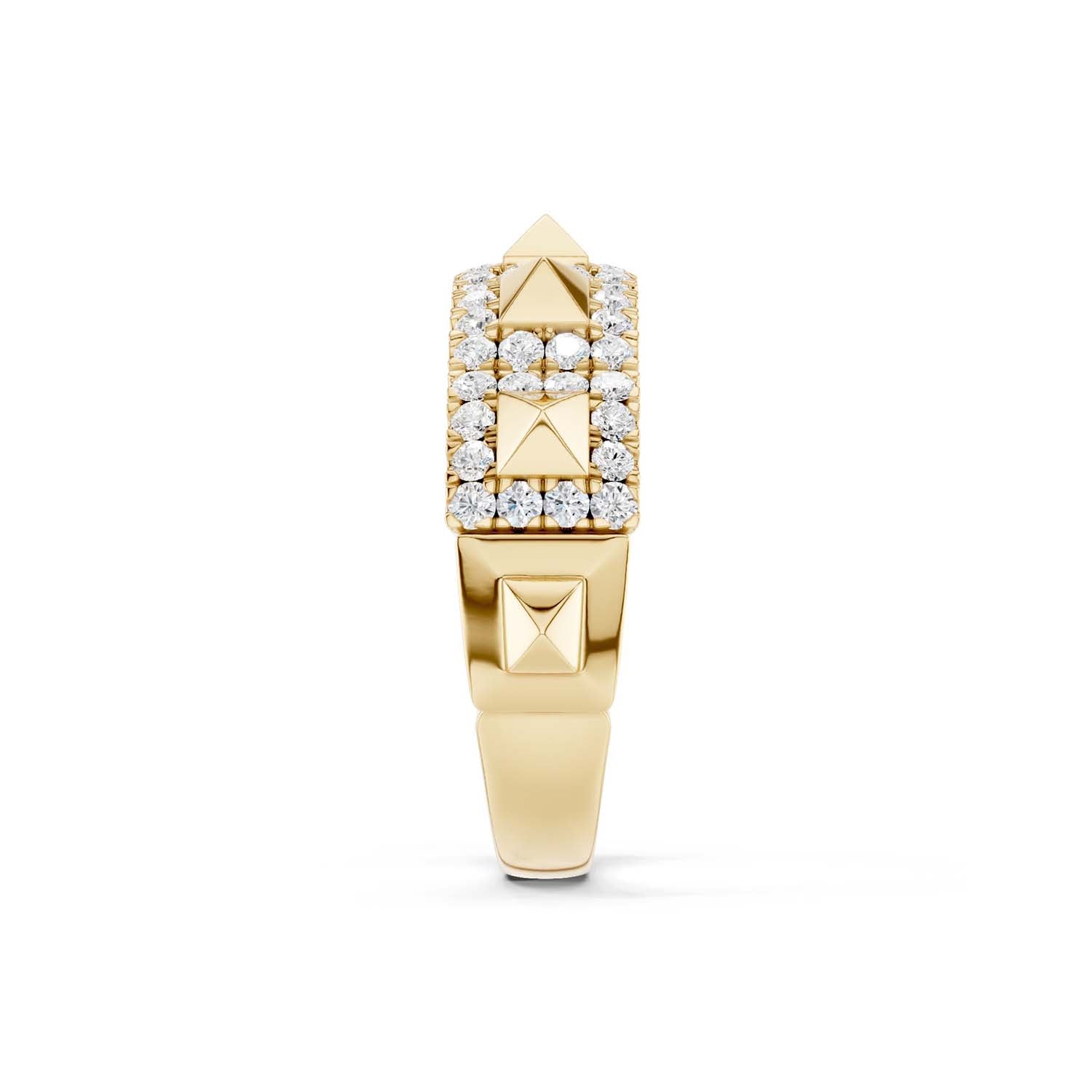 Understated yet elegant, the Pyramid Luxe Geometric Sleek Band offers a refined take on everyday luxury. Featuring a delicate row of three-dimensional pyramid motifs, meticulously encrusted with sparkling lab-grown diamonds, it exudes a subtle shimmer that complements any look. The unique geometric elements deliver a modern edge, making this band a statement of individuality. Ideal for those seeking a chic, contemporary look with a classic edge, this diamond band makes a sleek, luxurious statement. The sleek profile ensures a timeless charm that pairs effortlessly with any outfit.