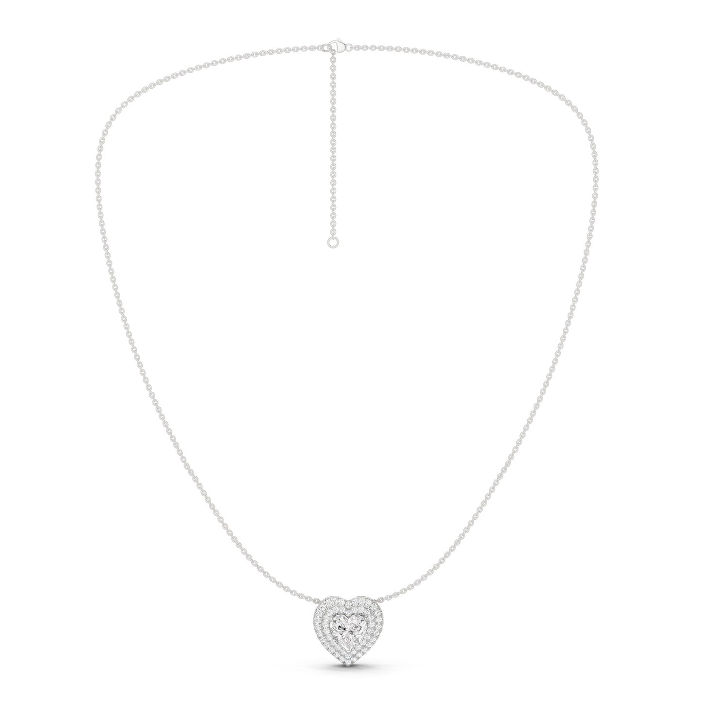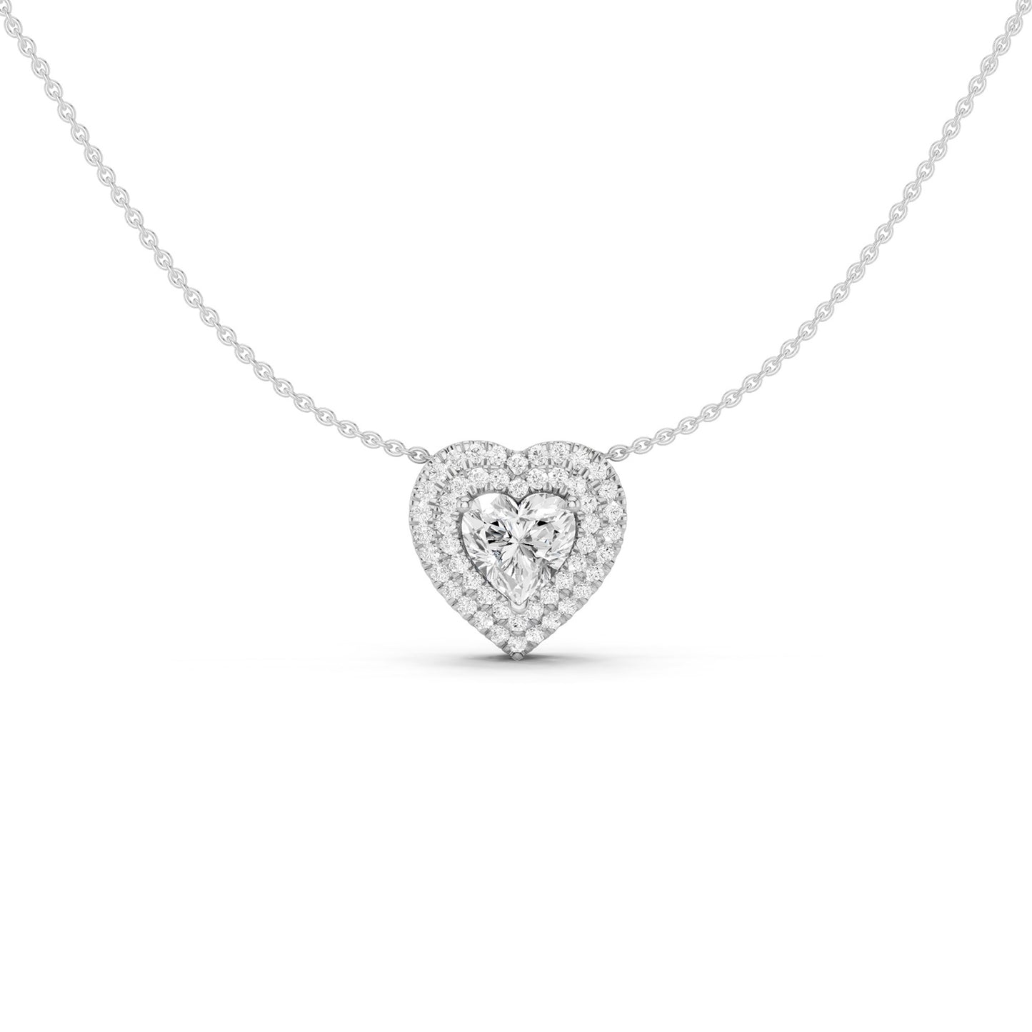 Embrace the essence of love with the Quaint Double Halo Heart Pendant. At its center, a stunning heart-shaped lab-grown diamond shines brightly, set in a classic prong setting for a secure and brilliant sparkle. The pendant is surrounded by two halos of dazzling diamond accents, adding depth and radiance to the already captivating heart. Crafted with precision and care, this piece is available in your choice of 14k white, yellow, or rose gold, making it a versatile and timeless addition to any jewelry collection. Whether celebrating a milestone moment or simply adding a touch of elegance to everyday wear, this diamond pendant is a beautiful expression of love and commitment.