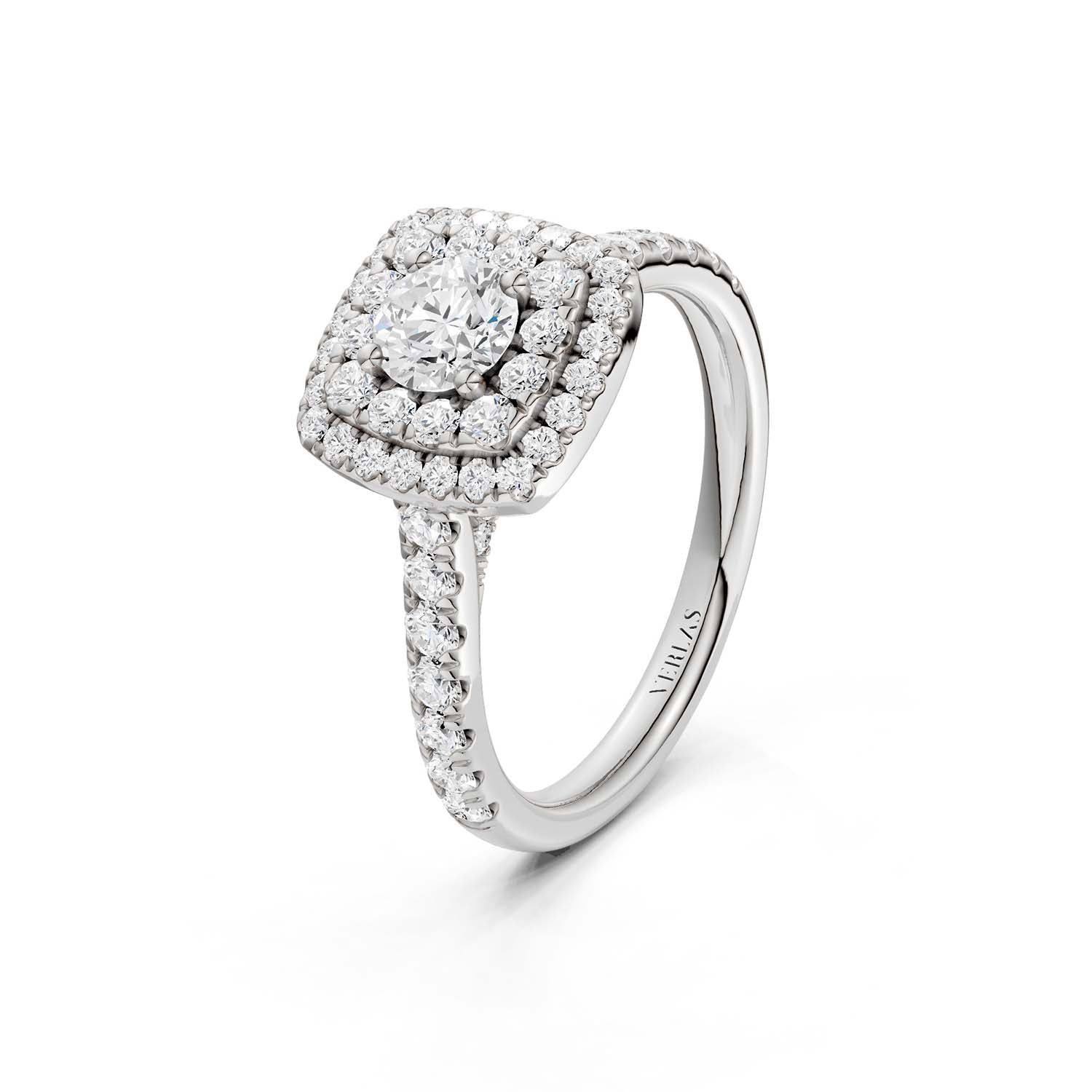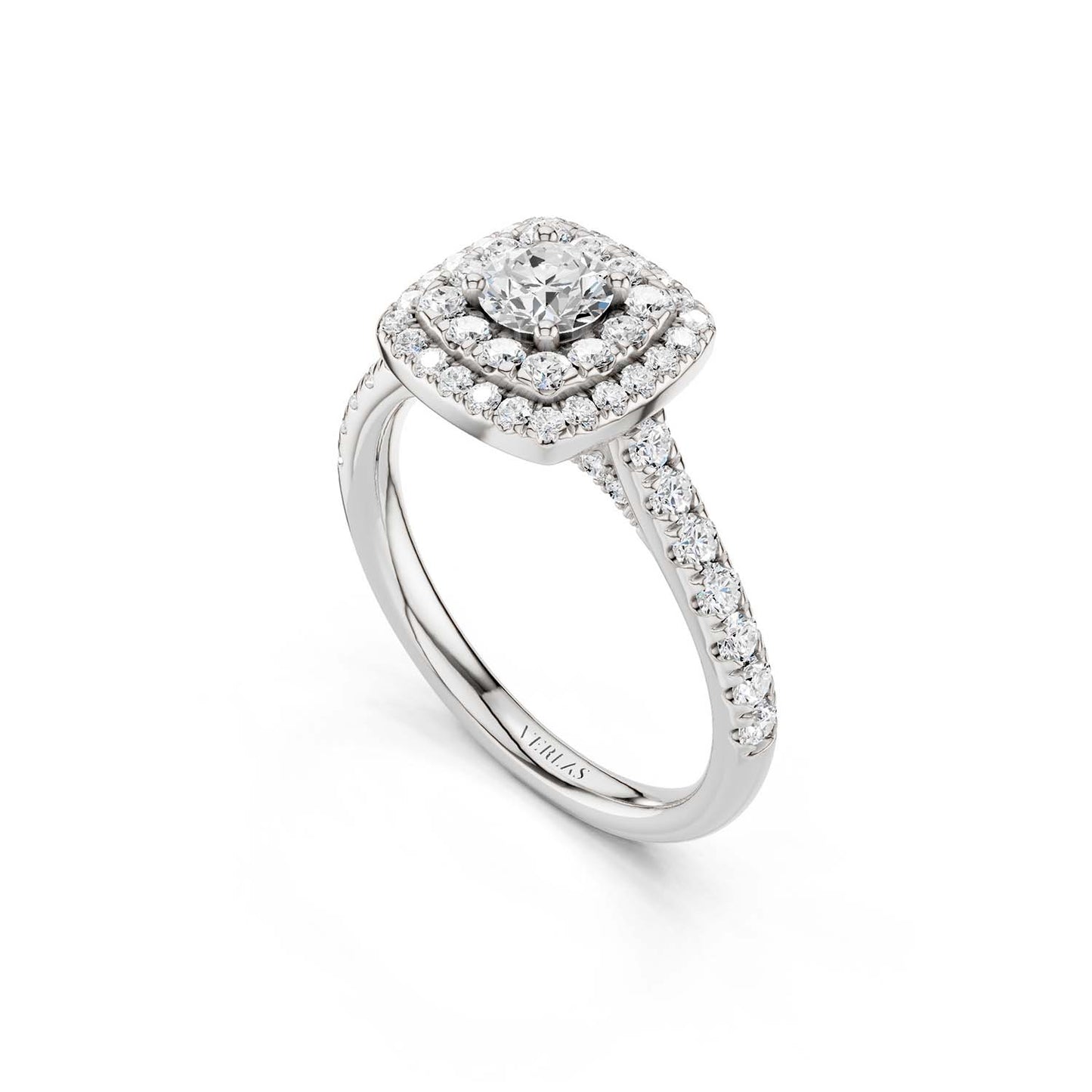 Experience the brilliance of the Quaint Signature Round Princess Double Halo Diamond Ring. This exquisite ring features a stunning round princess-cut diamond encircled by a double halo of sparkling diamonds. Crafted in solid gold, it showcases Verlas' commitment to susta. . . Read More