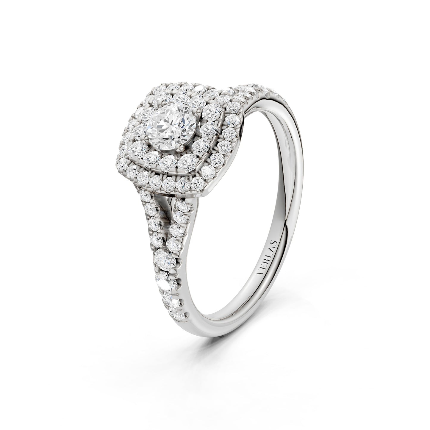 Clarity, one of the “Four C’s,” measures a diamond’s naturally-occuring imperfections (also called ‘inclusions’ or ‘flaws.’). Per gemological standards, diamond clarities are categorized as Flawless (F), Internally Flawless (IF), Very Very Slightly included (VVS), Very Slightly included (VS) and Included (I). Under 10x magnification, Flawless diamonds do not show any inclusions. Higher-clarity diamonds are rarer and pricier. However, many types of inclusions are invisible even to the naked eye, not to mention they give natural diamonds their unique character. Verlas strikes a balance between clarity and price point which is why we offer hand-cut VS and SI clarity diamonds certified by IGI. You can always contact Verlas Concierge for a different diamond clarity on your favorite Verlas designs.