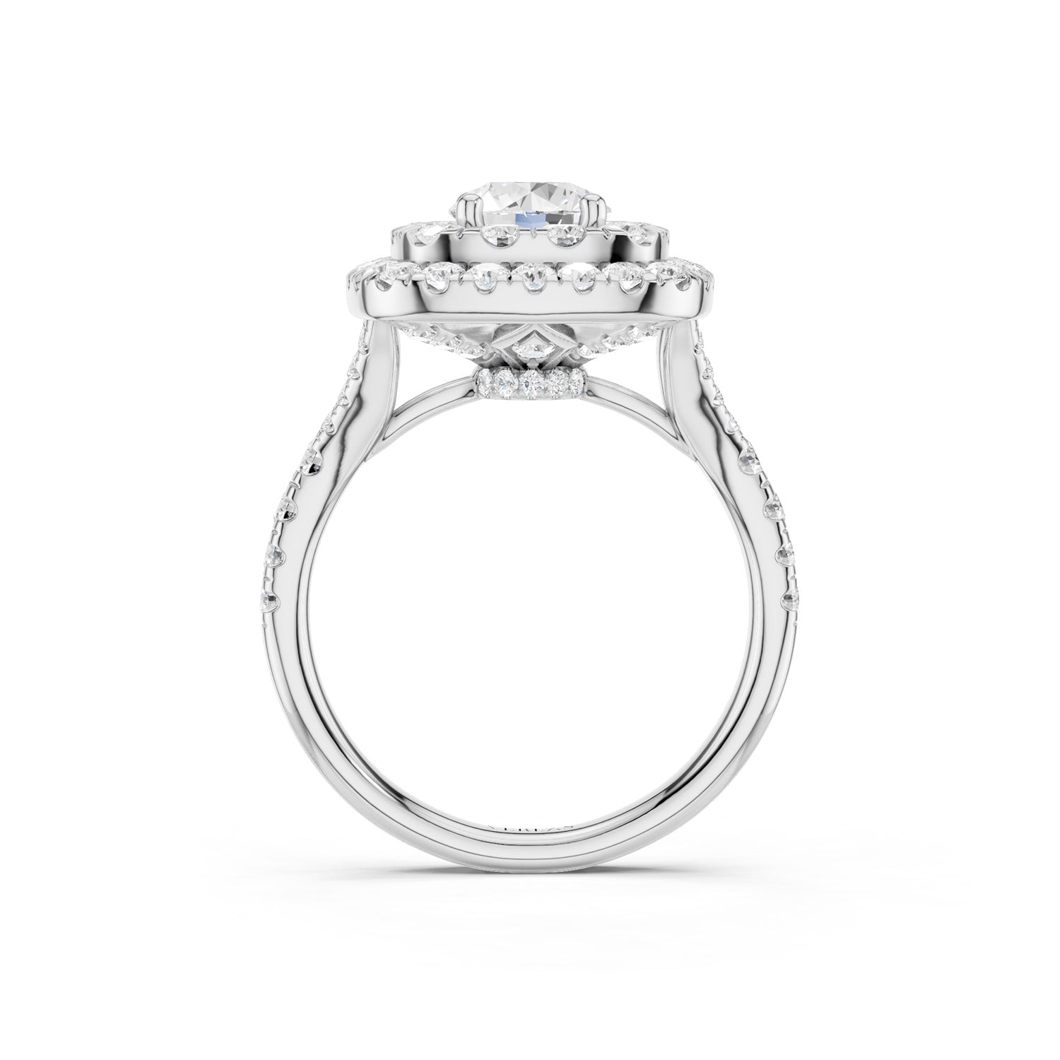 The Round-Center Princess Double Halo Ring is a must-have statement piece in your collection. A symbol of luxury, this masterpiece features a radiant center stone encircled by a double halo of diamonds. Its band, adorned with accent diamonds, adds to its glory. Here’s a ring that’s not just a piece of jewelry but a statement of style and sophistication.