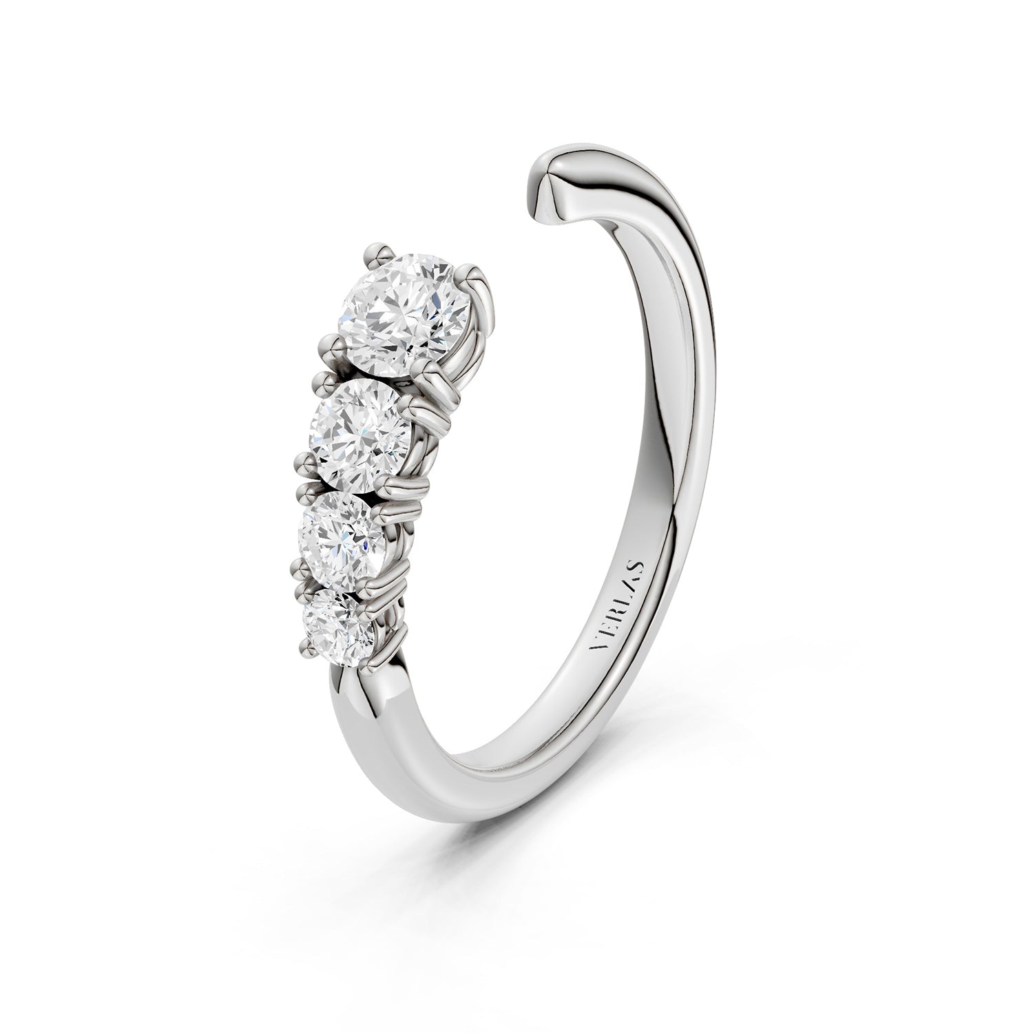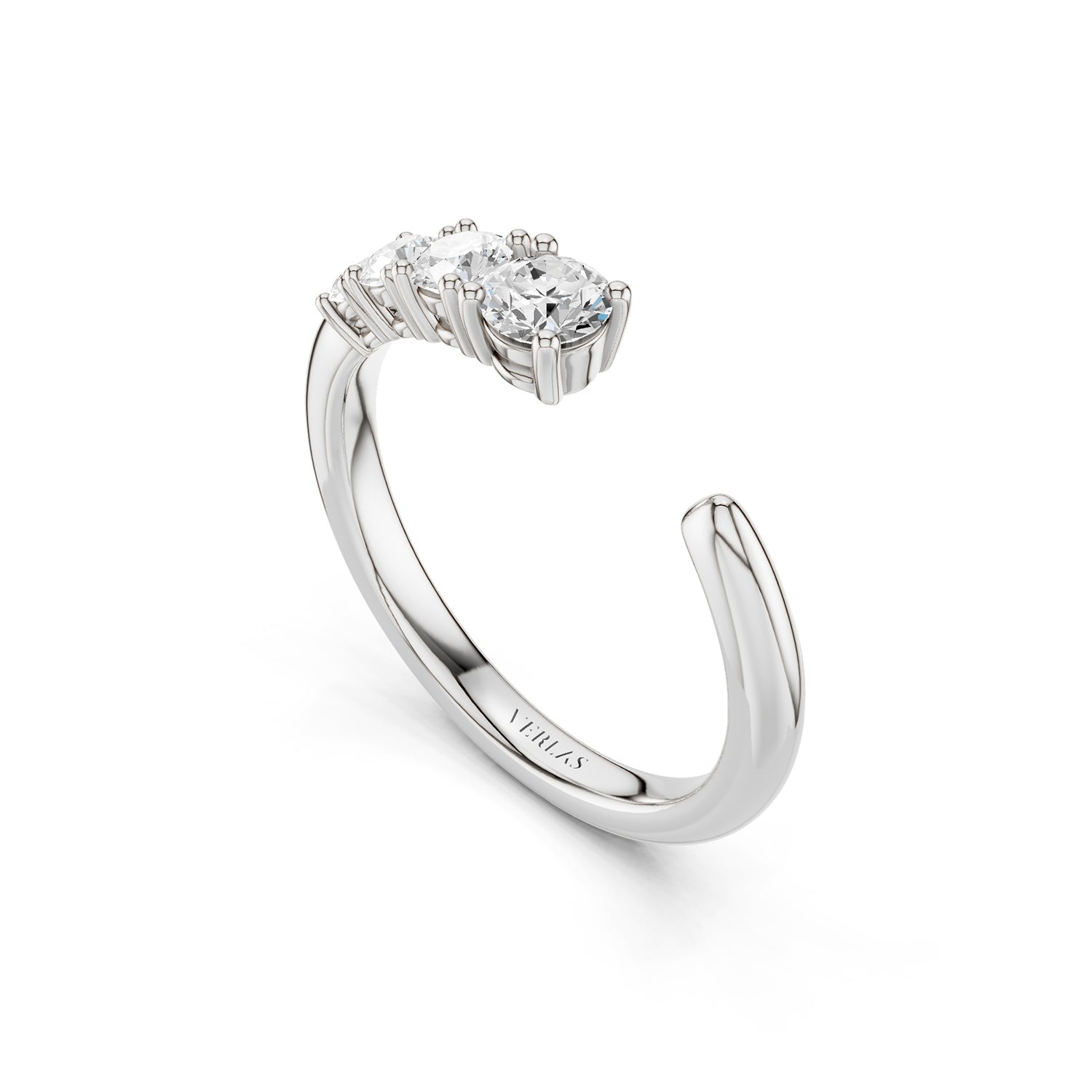 For those who believe love is built on shared past, present, and forever, the Three-Stone Diamond Engagement Ring, or the Trinity ring, as we like to call it, makes a meaningful choice. Its unique spread of diamonds forms a trinity of brilliance, representing the journey of two souls intertwined. Find your three-stone ring here