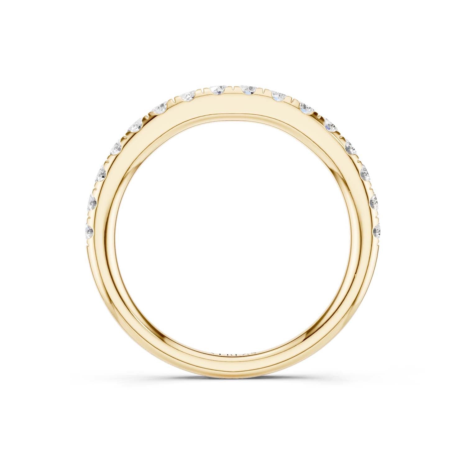 The Round-Embellished Band represents the deep connection shared between souls. As it encircles your finger, the delicate round diamonds adorning the sleek band echo the precise craftsmanship. The band's understated elegance is one of its standout features—a cherished choice for those seeking gold diamond wedding bands.