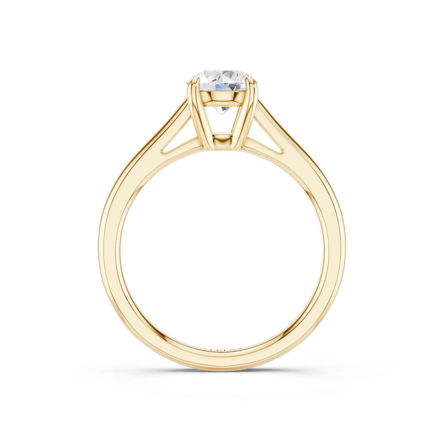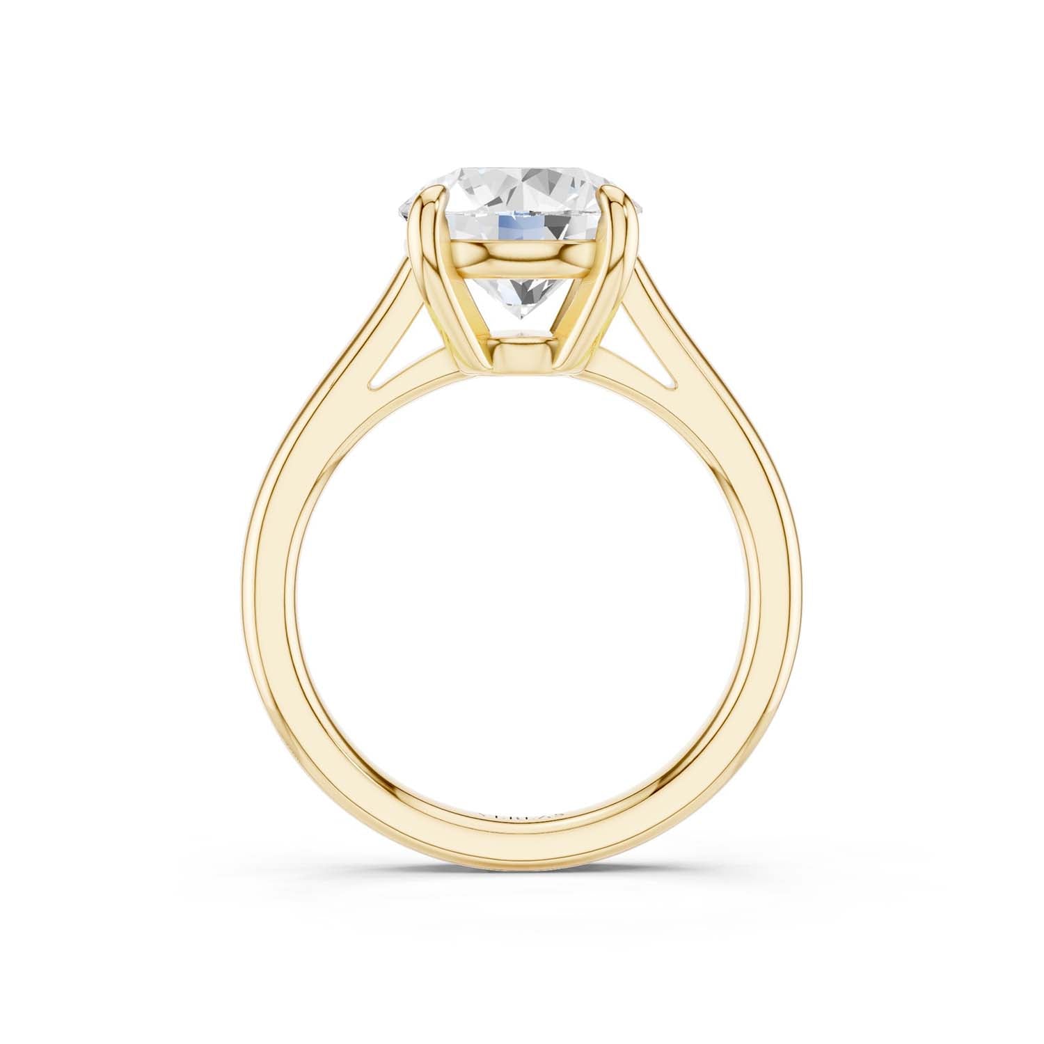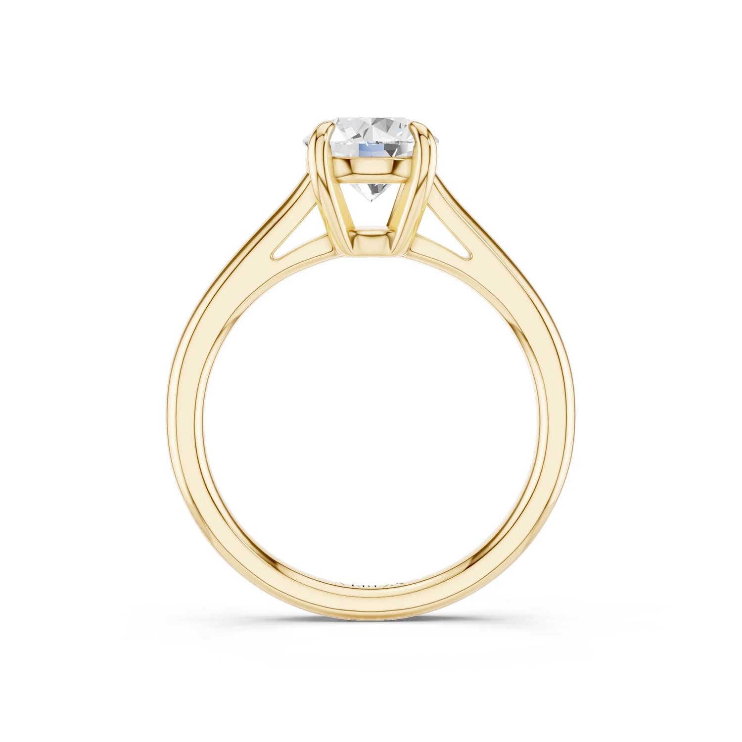 Elegant in its simplicity, this lab-grown diamond solitaire ring is a splendid illustration of enduring style. This design can be perfectly crafted with a lab-grown round diamond set on a fine gold band. This versatile ring comes with a 4-prong setting and can be easily paired with any band.