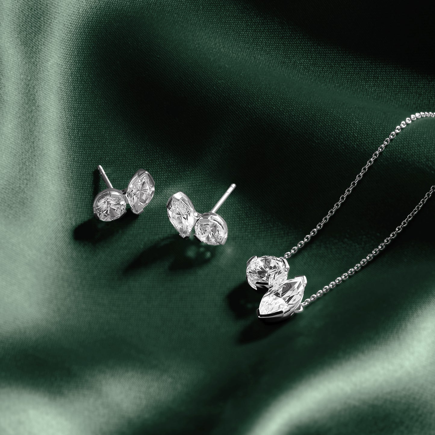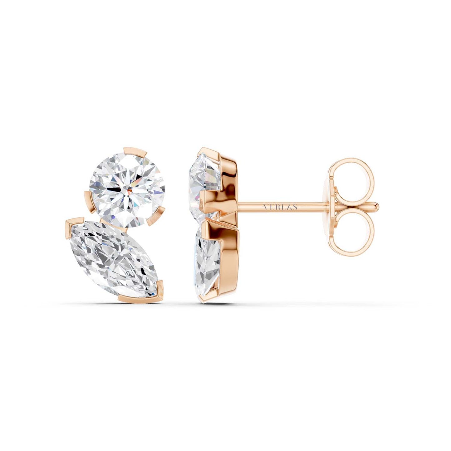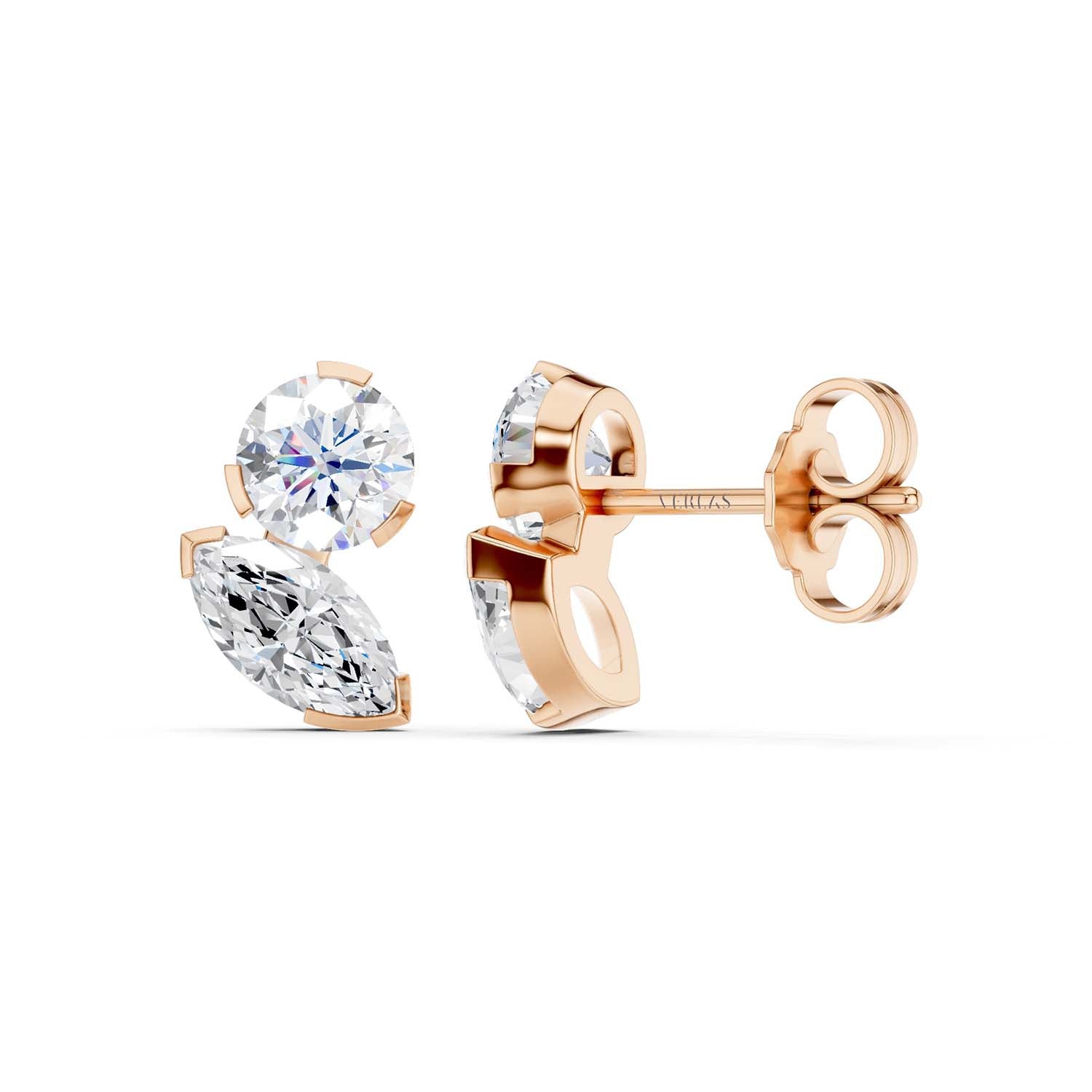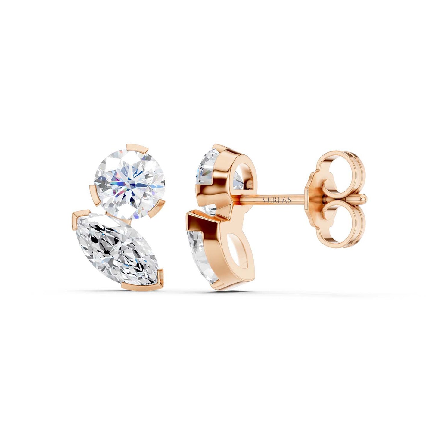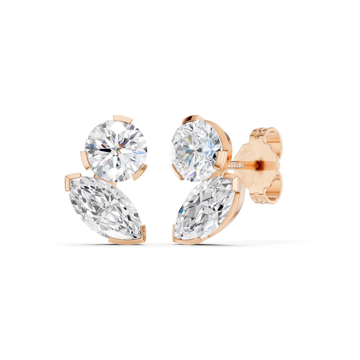 Round Marquise Diamond Two Stone Studs