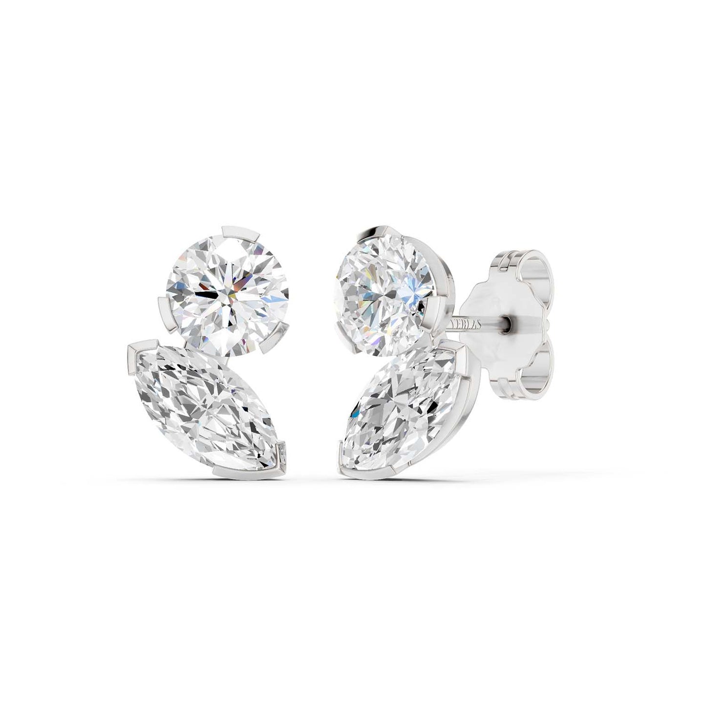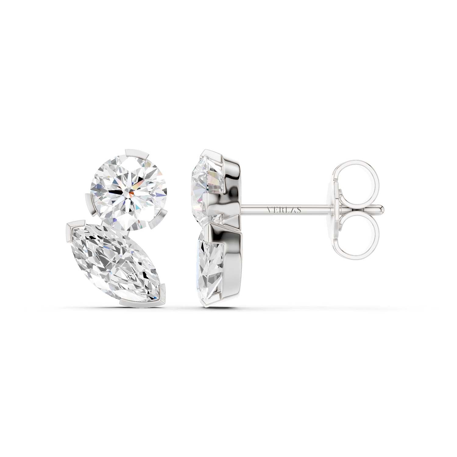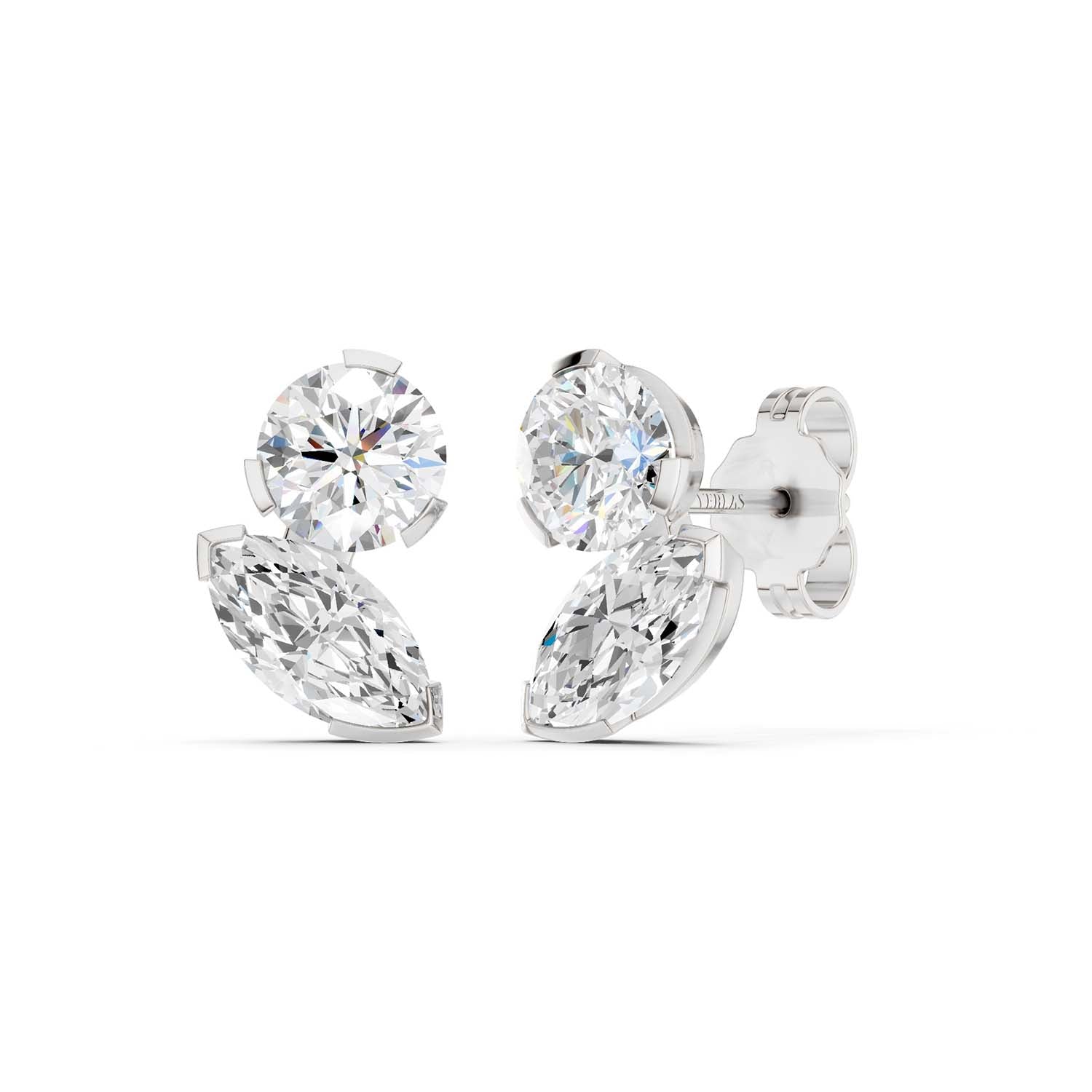 Round Marquise Diamond Two Stone Studs