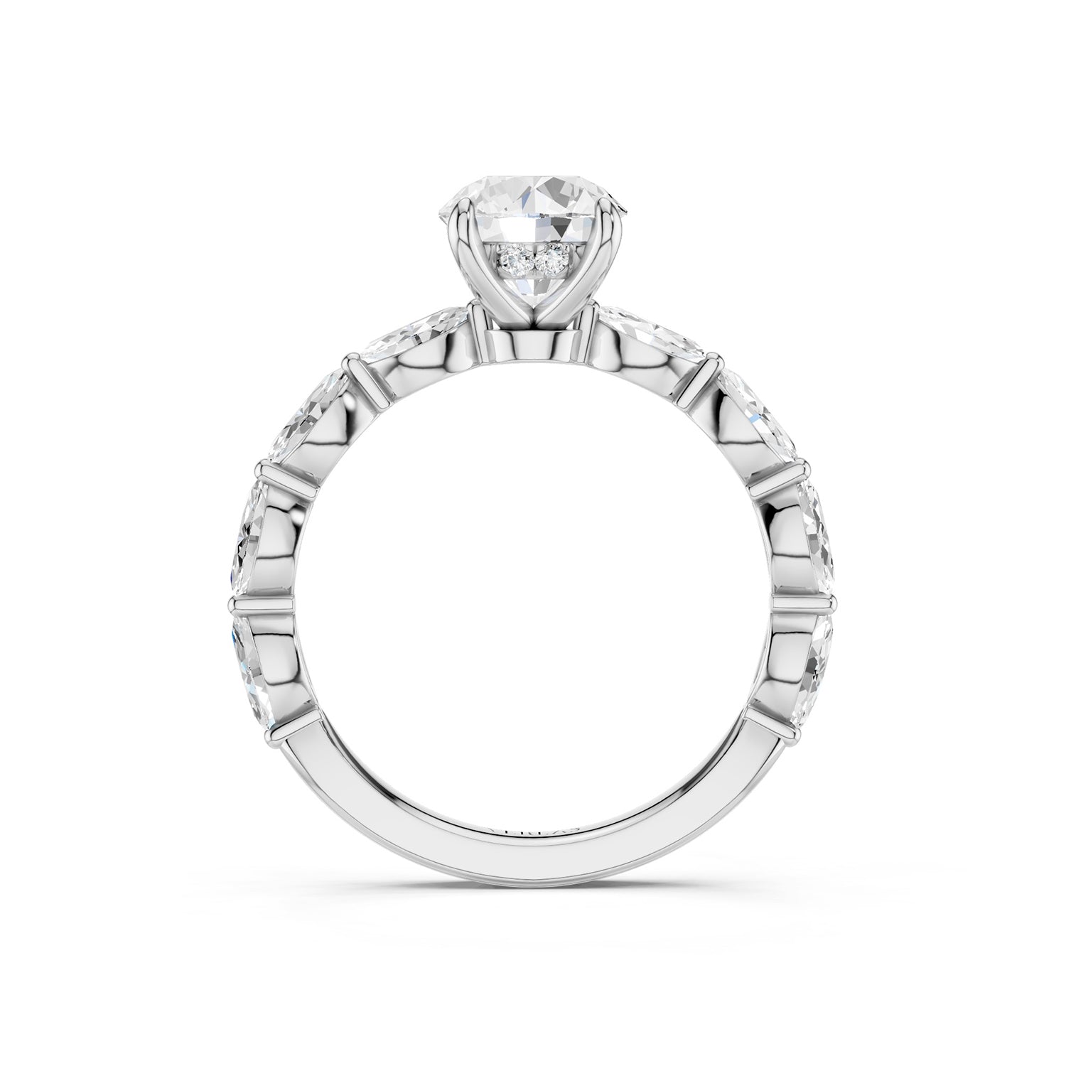 A modern heirloom in the making — this Round-Marquise Hidden Halo Diamond Ring features a radiant round-cut lab-grown diamond at its center, elevated by a secret halo tucked beneath for a shimmer only you’ll know about. Marquise-shaped side di. . . Read More
