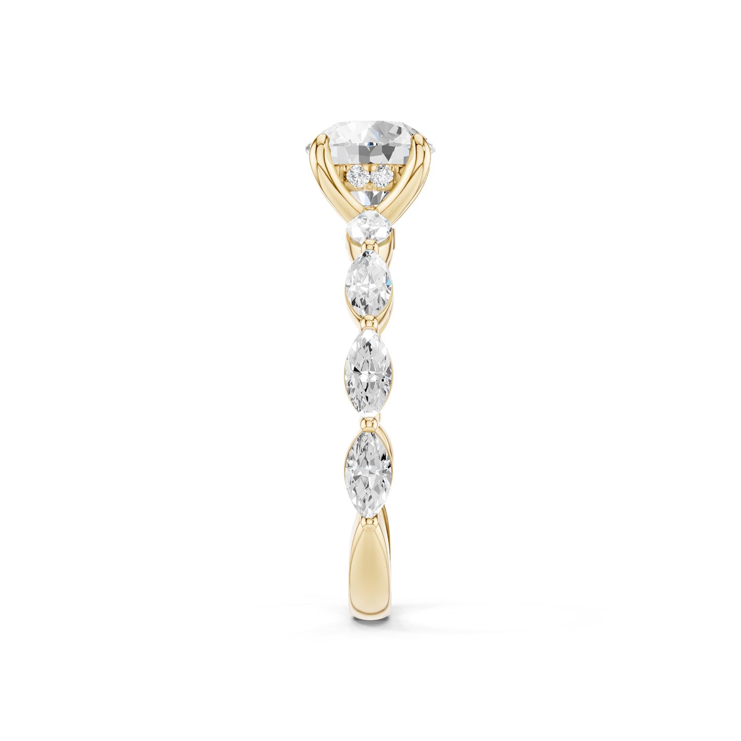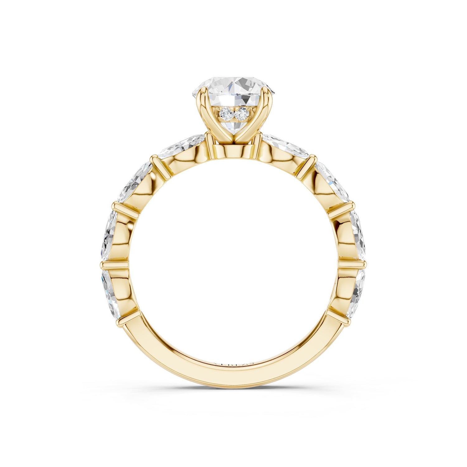 A modern heirloom in the making — this Round-Marquise Hidden Halo Diamond Ring features a radiant round-cut lab-grown diamond at its center, elevated by a secret halo tucked beneath for a shimmer only you’ll know about. Marquise-shaped side di. . . Read More