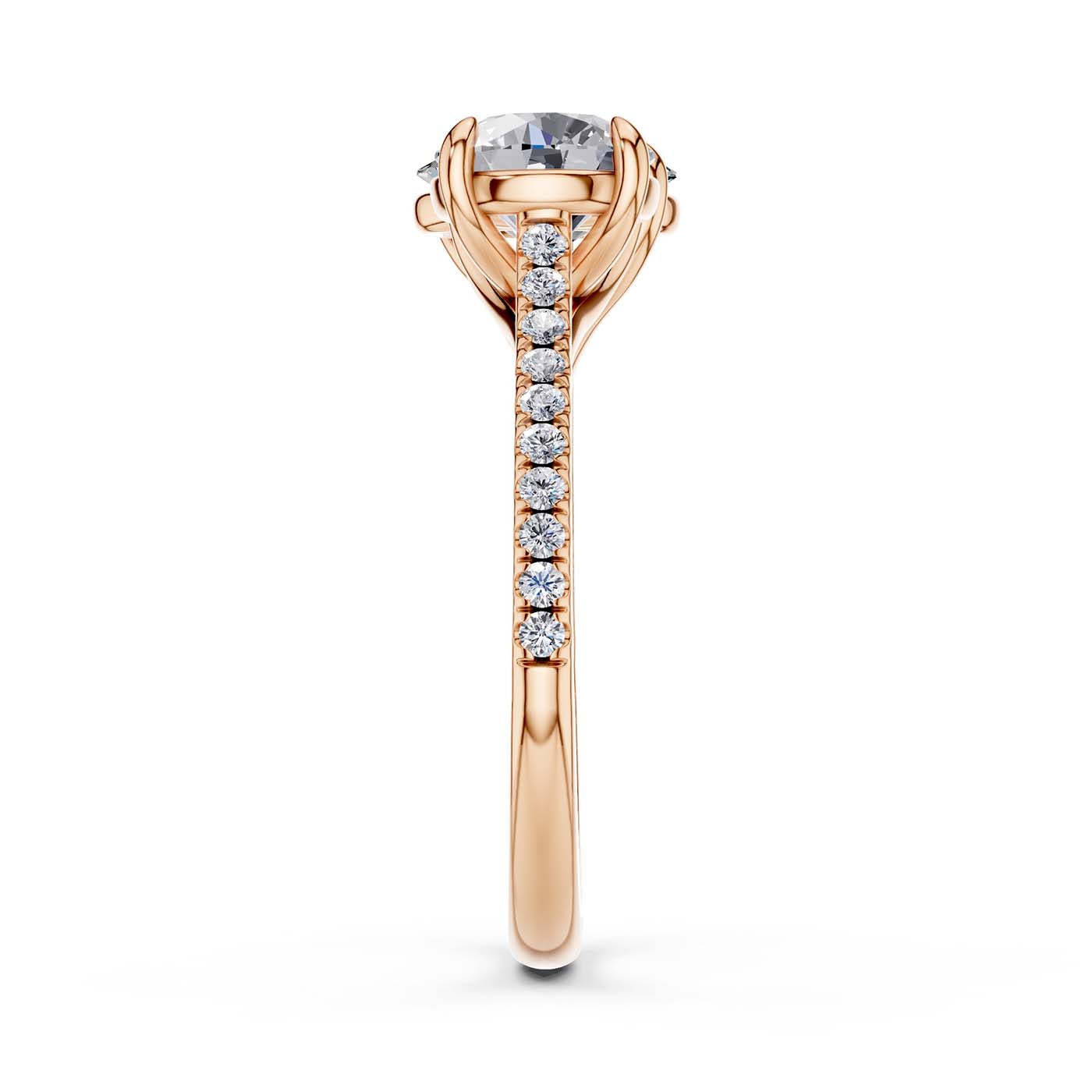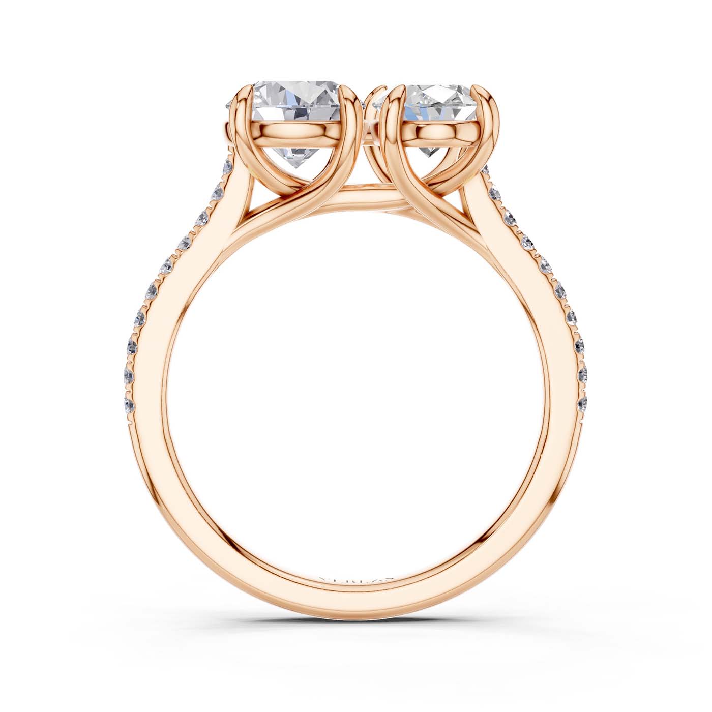 This captivating Toi et Moi consists of a duo of round and oval diamonds, each carefully seleCt.ed to represent the unique qualities that make your love story exceptional. Designed to ignite the sparks of passion and devotion, the ring's intricate shank, adorned with a trail of brilliant diamonds, mirrors the radiant journey of love.