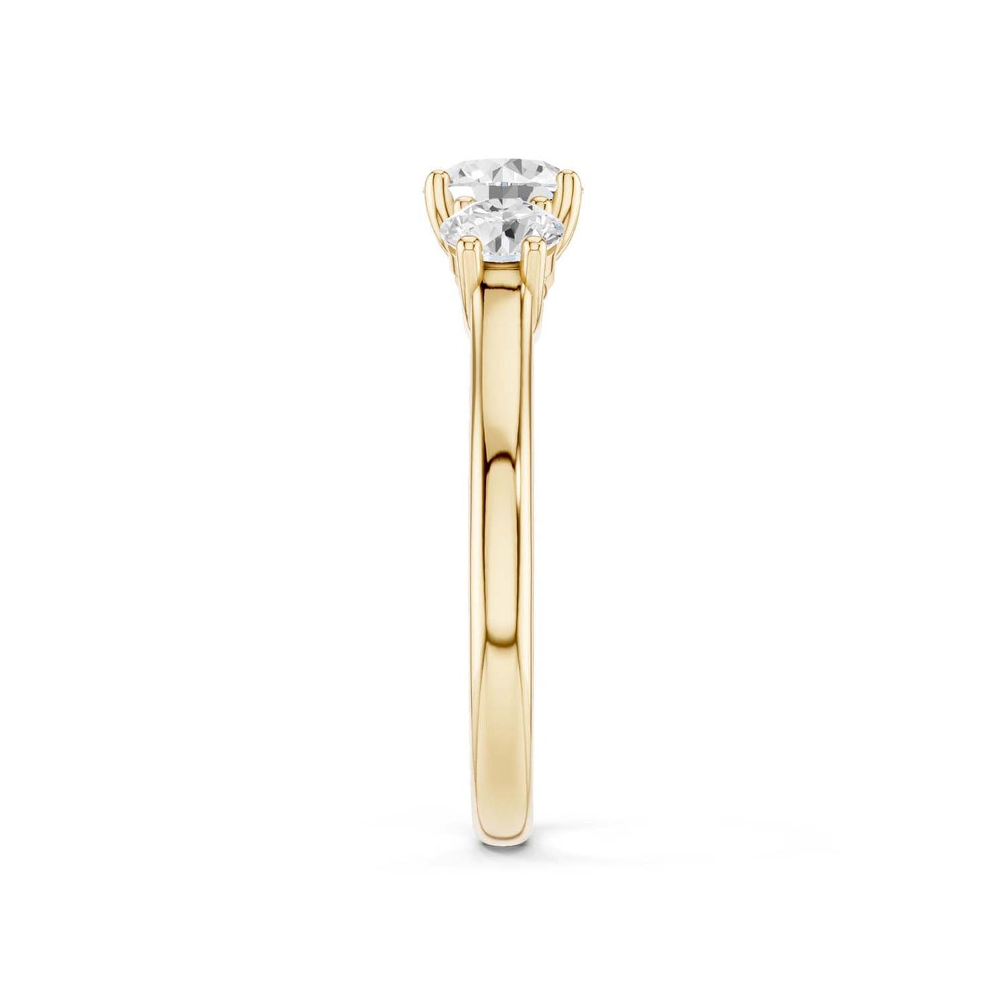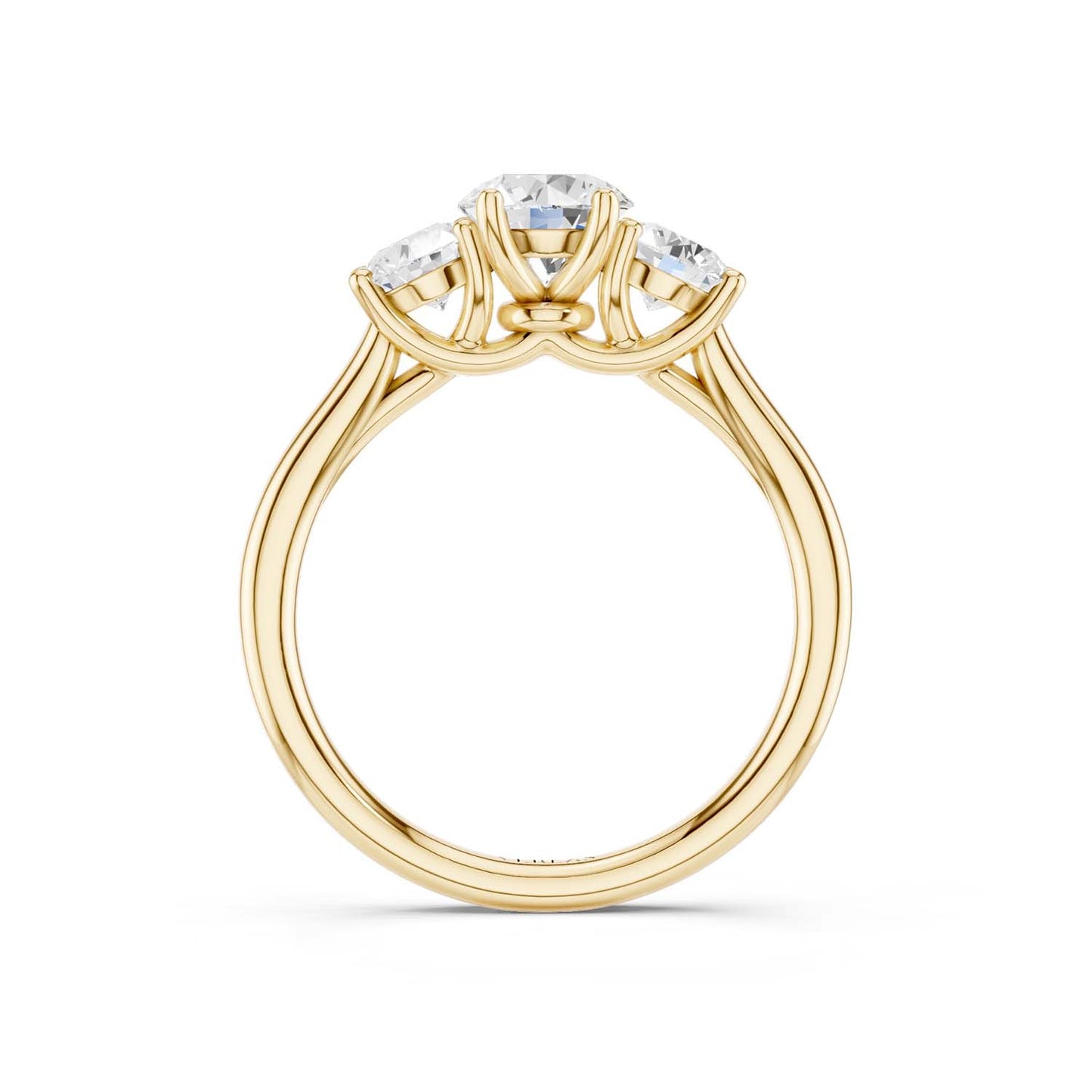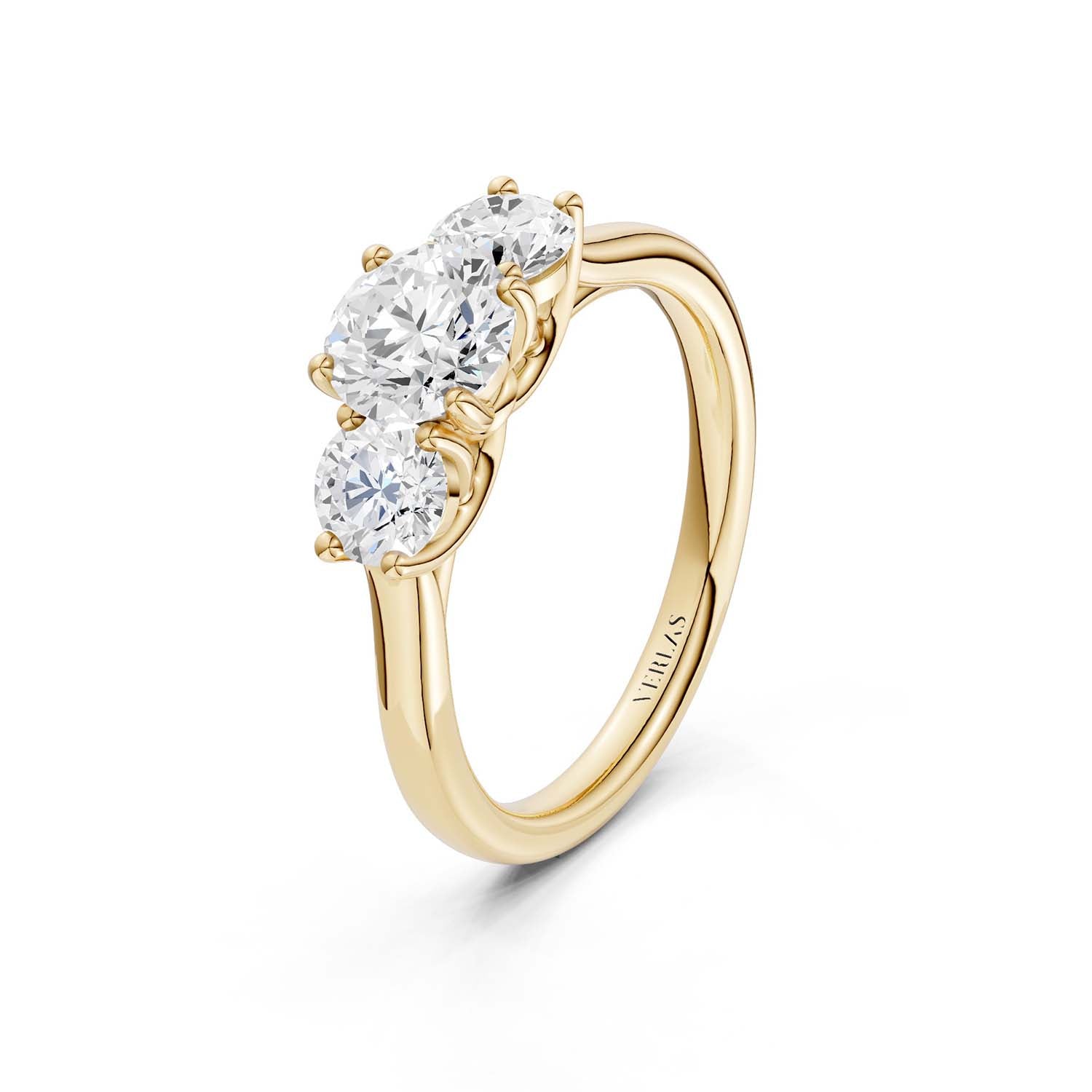 Round Vows is an exquisite three-stone ring featuring three eye-catching prong set diamonds. This timeless design ensures the diamonds will shine and create a lasting impression. Each diamond is carefully held in place in the three prongs, securing its place and brilliance for years to come, making it one of the most sought-after diamond engagement rings.