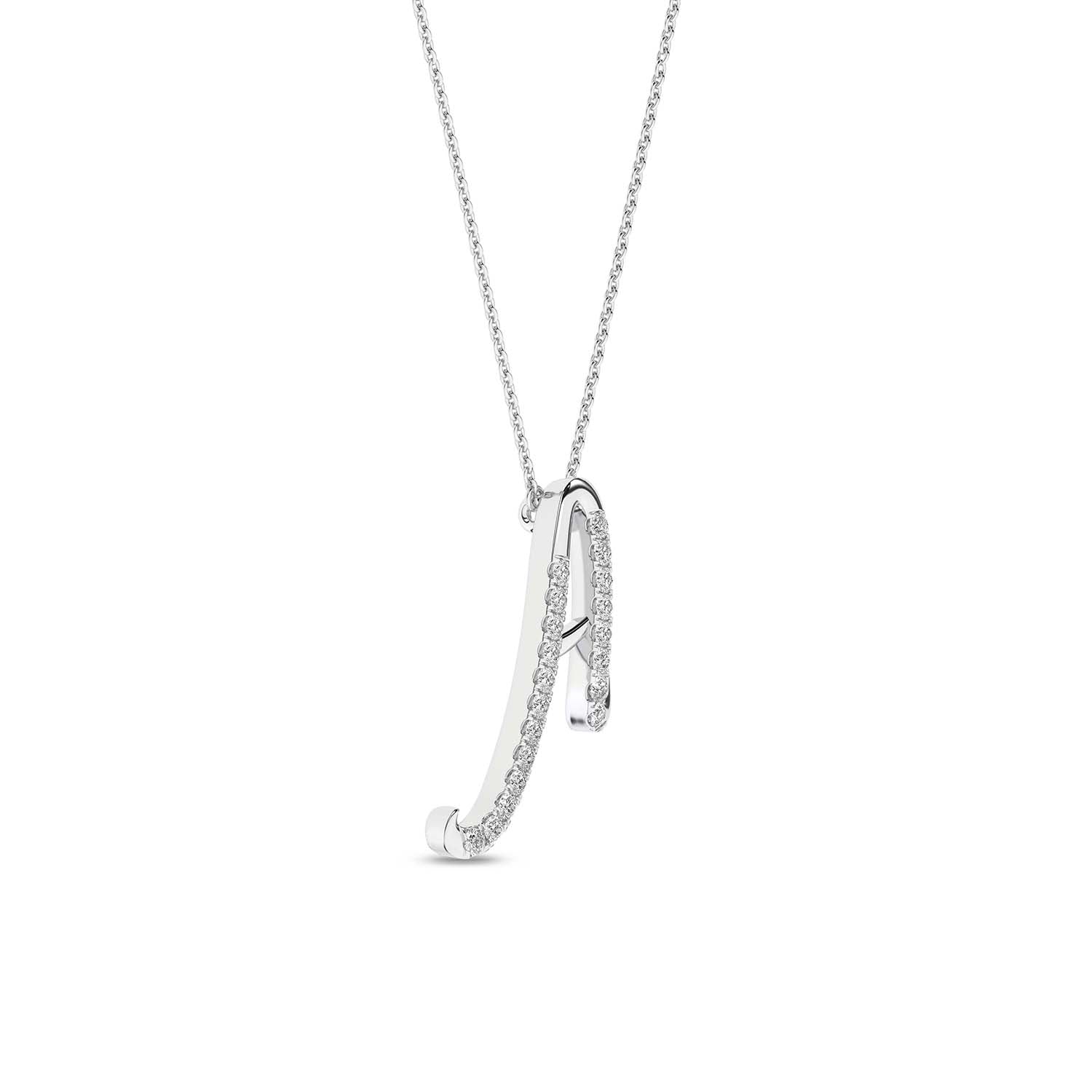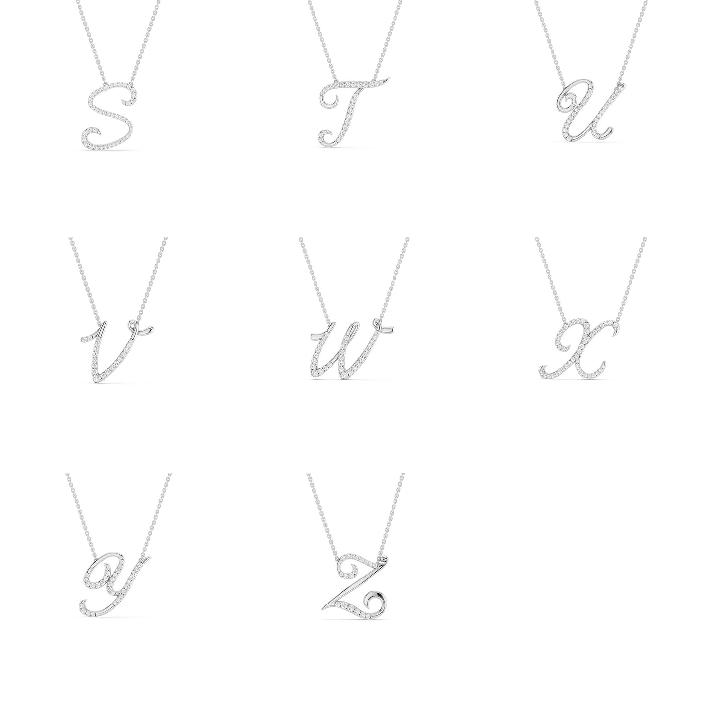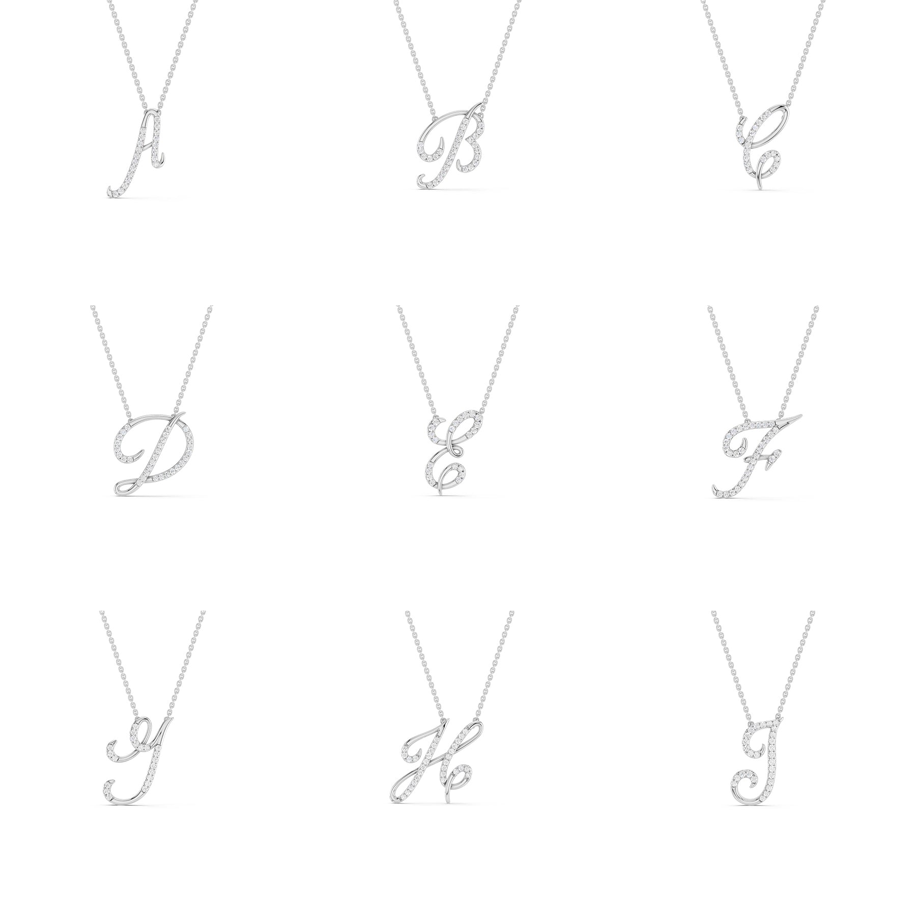 Available in A-Z, initials in round brilliant diamonds. The signature feature of this diamond pendant necklace is the stunning diamond accent that adorns your chosen initial. Each diamond in this Signature Diamond Alphabet Necklace is expertly set, adding a touch of luxury to your everyday wear. Customized with your choice of initial, it allows you to wear your name, a loved one's name, or any meaningful letter close to your heart.