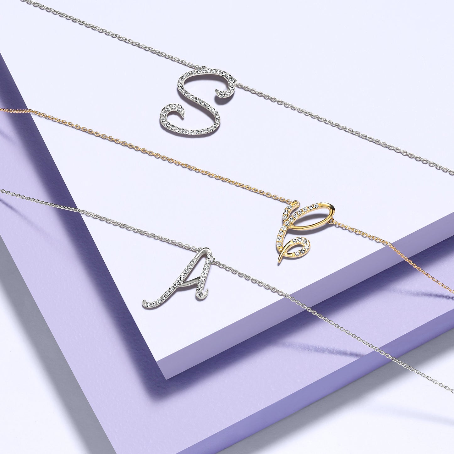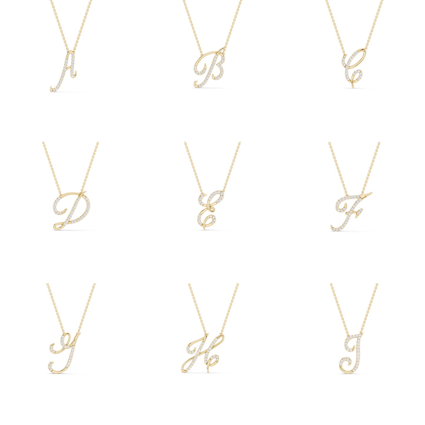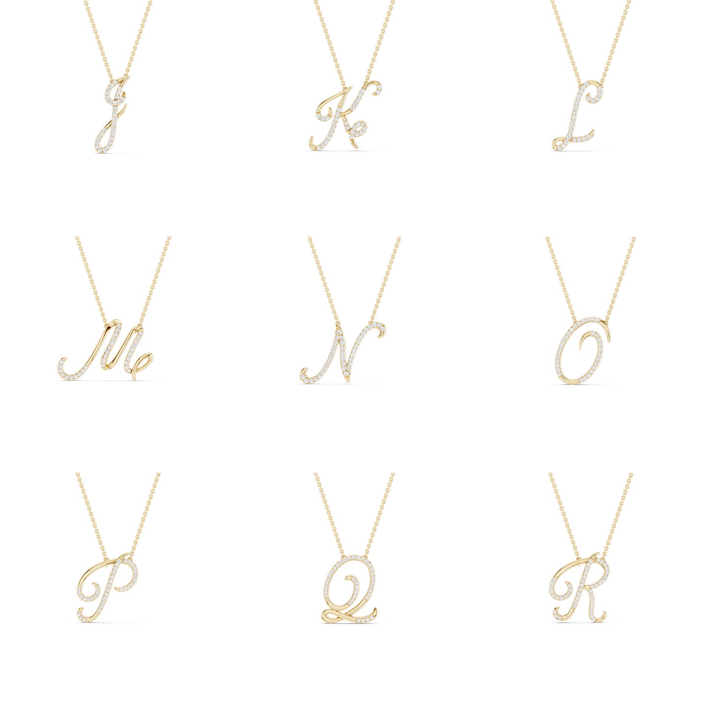 Available in A-Z, initials in round brilliant diamonds. The signature feature of this diamond pendant necklace is the stunning diamond accent that adorns your chosen initial. Each diamond in this Signature Diamond Alphabet Necklace is expertly set, adding a touch of luxury to your everyday wear. Customized with your choice of initial, it allows you to wear your name, a loved one's name, or any meaningful letter close to your heart.