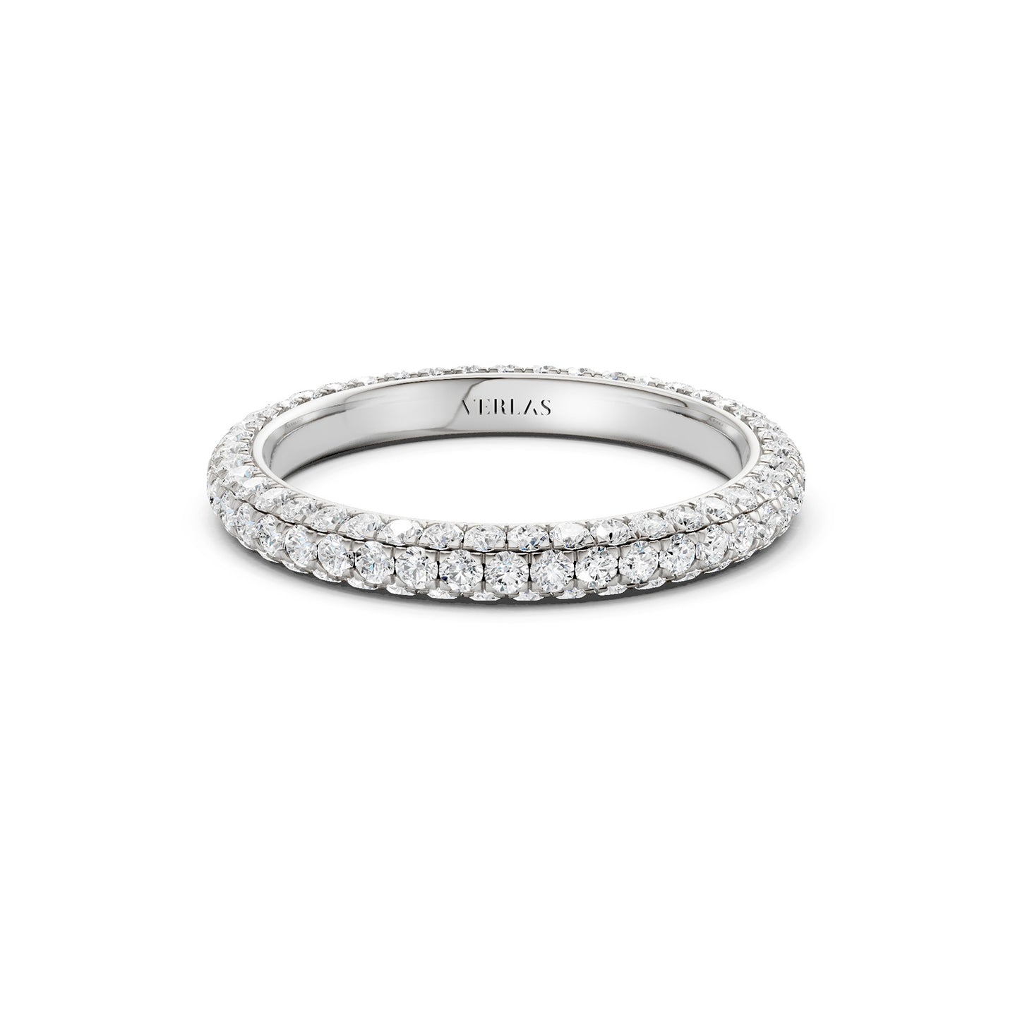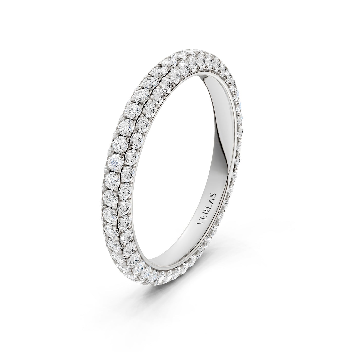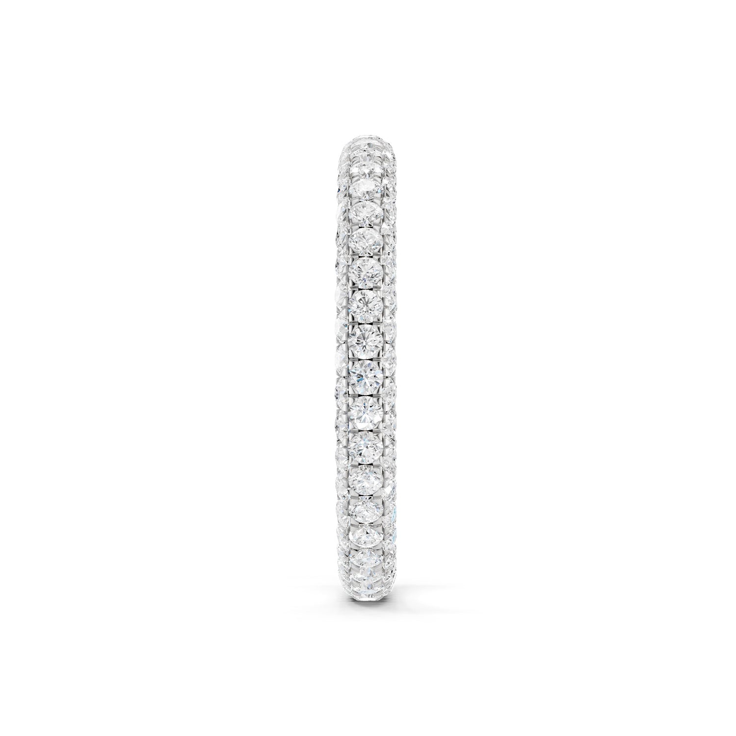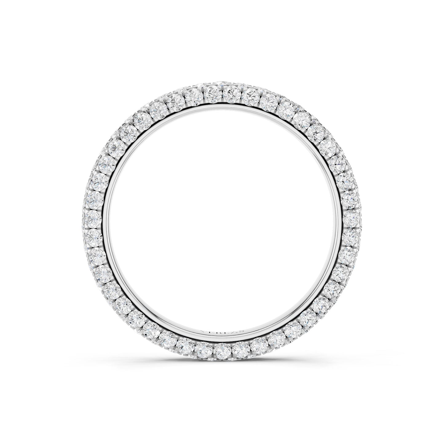 The Signature Eternal Band adorns your finger in pure luxury. The ring is wrapped in rows of radiant diamonds on three sides and reflects the allure of simplicity and precision. This band is a perfect addition to your stacking collection.