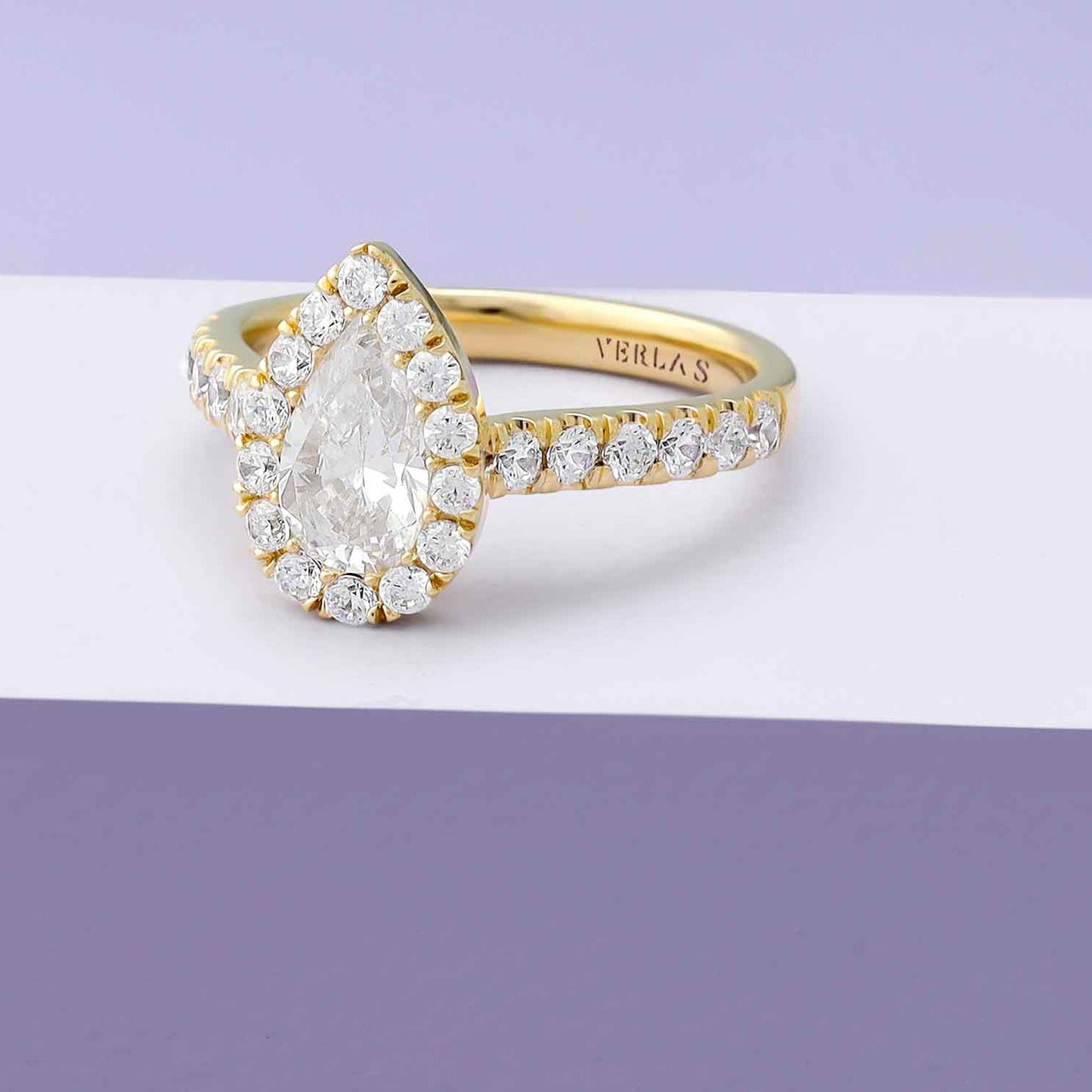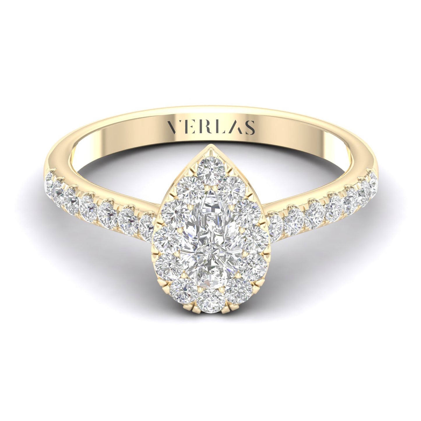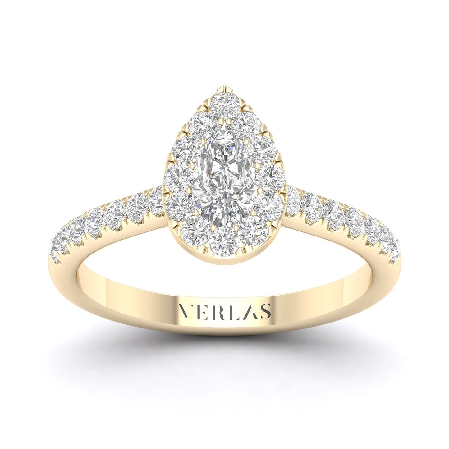 This ravishing Signature Iconic Dewdrop Halo Ring of a pear-shaped diamond illusion centered by petite round diamonds is endearing. With a strikingly brilliant and entirely graceful design, this pear-shaped diamond engagement ring is a beautiful choice to mark your life'. . . Read More