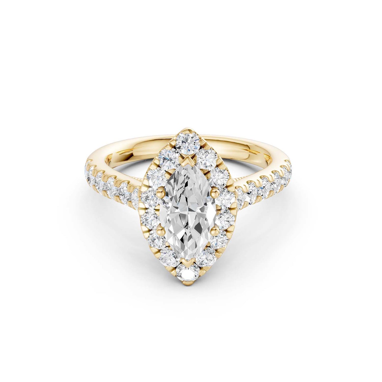 Read MoreThe Signature Marquise Halo Ring is a true statement of sophistication. The marquise-cut diamond, surrounded by a halo of smaller diamonds, creates a captivating visual effect. Crafted in gold, this ring is an embodiment of grace and elegance.