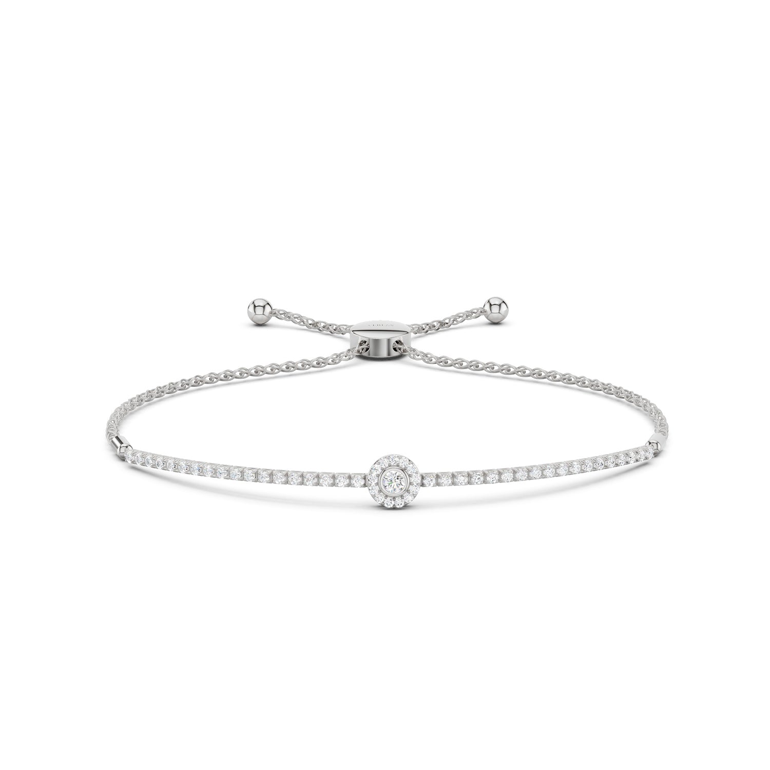 The Signature Round Halo Bolo Bracelet is a minimalist's dream. This diamond bracelet showcases a round diamond centerpiece encircled by a halo of tiny round diamonds. Its solid gold chain also sparkles with tiny diamonds, adding a touch of elegance to any outfit. The bo. . . Read More