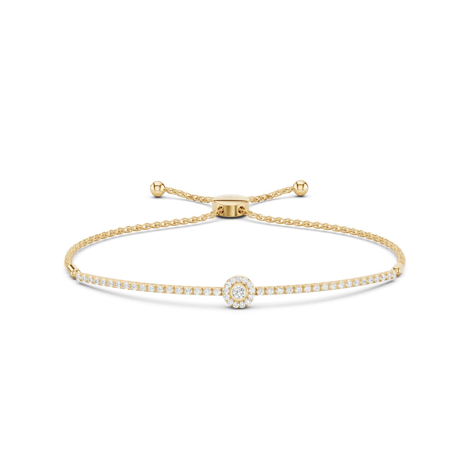 The Signature Round Halo Bolo Bracelet is a minimalist's dream. This diamond bracelet showcases a round diamond centerpiece encircled by a halo of tiny round diamonds. Its solid gold chain also sparkles with tiny diamonds, adding a touch of elegance to any outfit. The bo. . . Read More