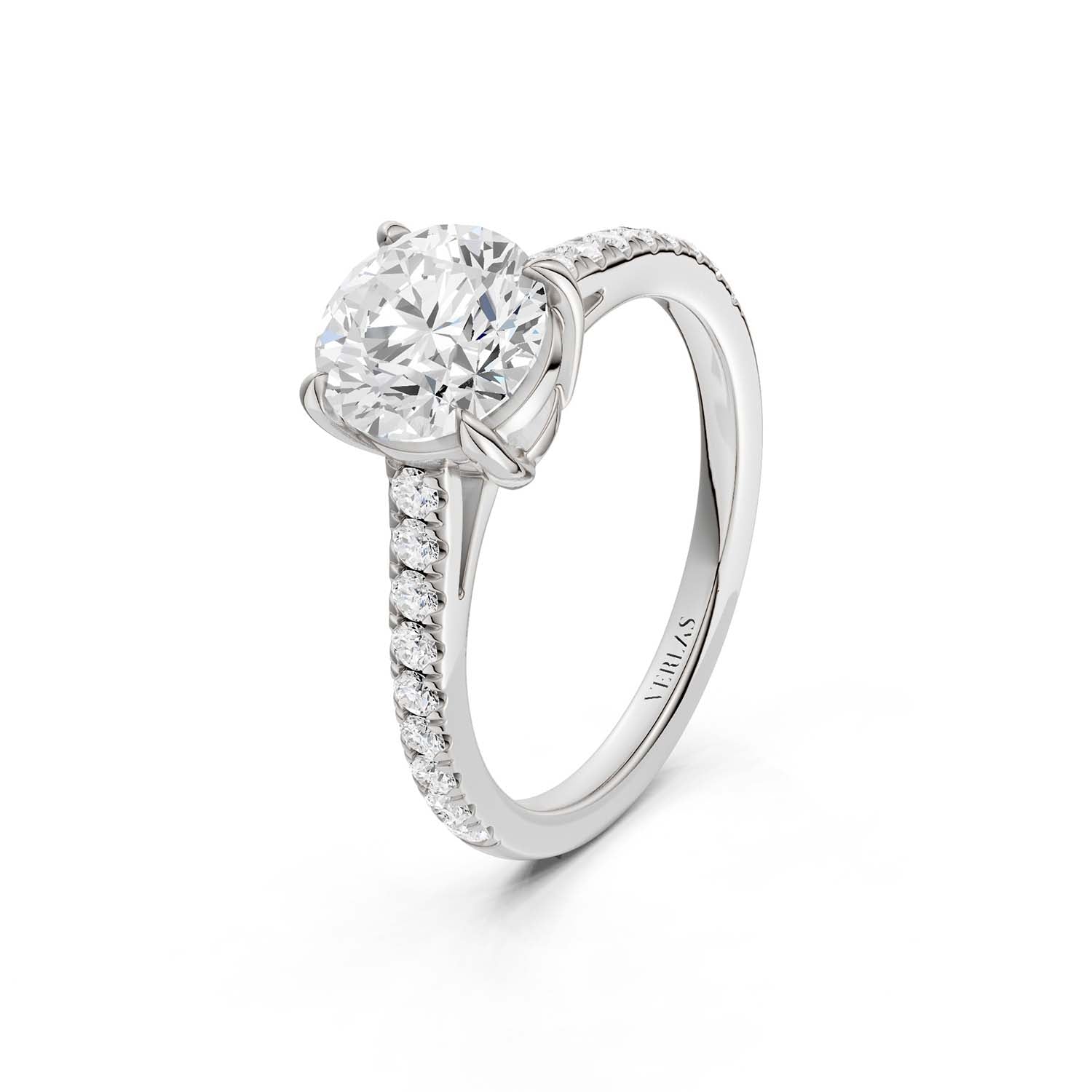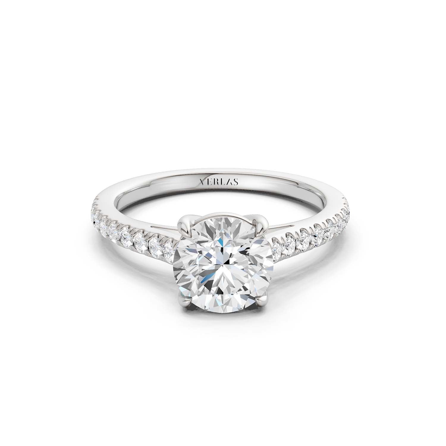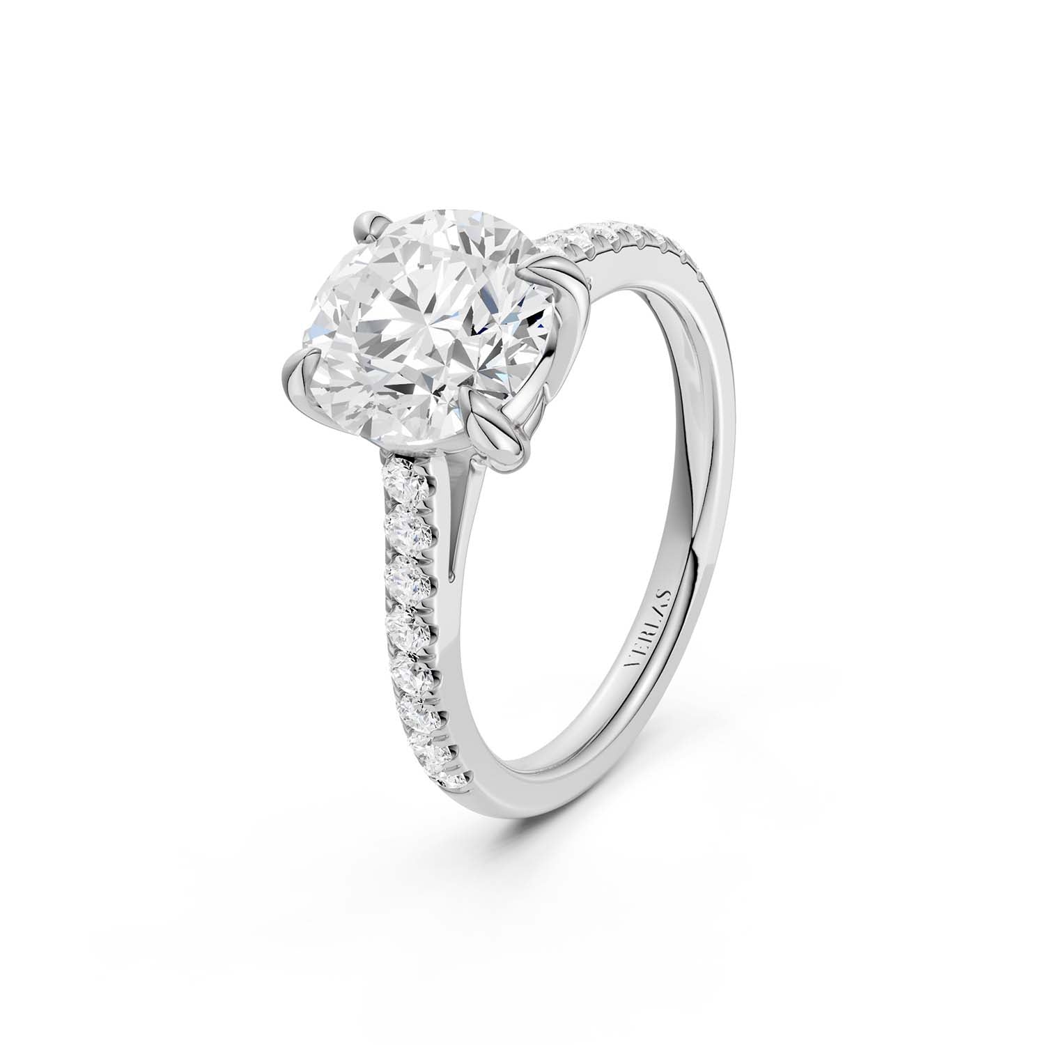 Read MoreA scintillating halo of brilliant diamonds and a striking round center stone result in an unrivaled display of brilliance. The lab-grown engagement ring consists of a petite band with diamonds extending halfway down the shank.