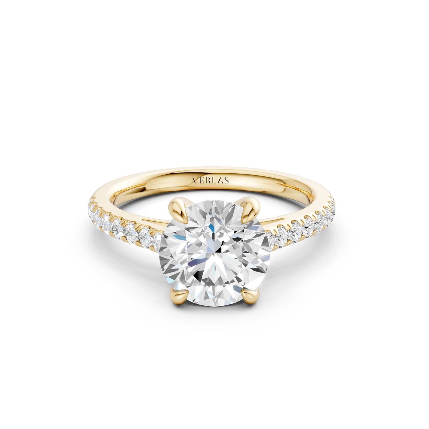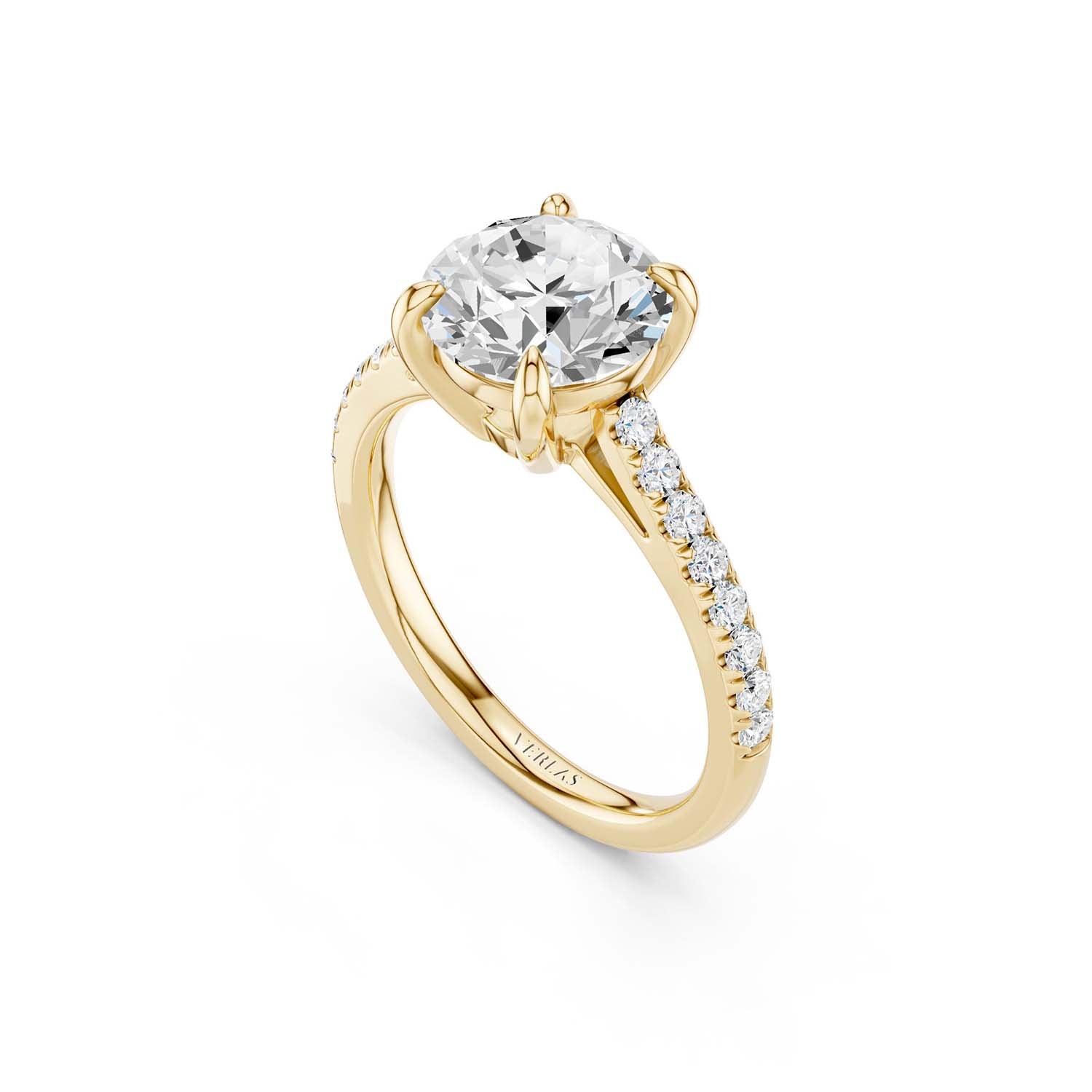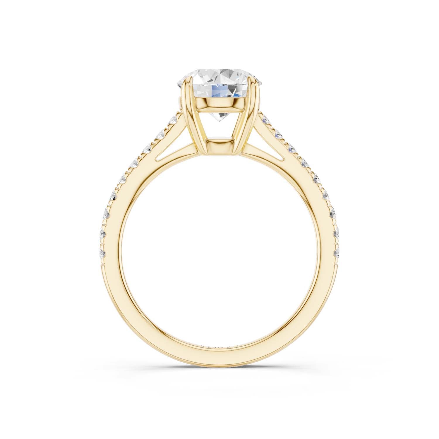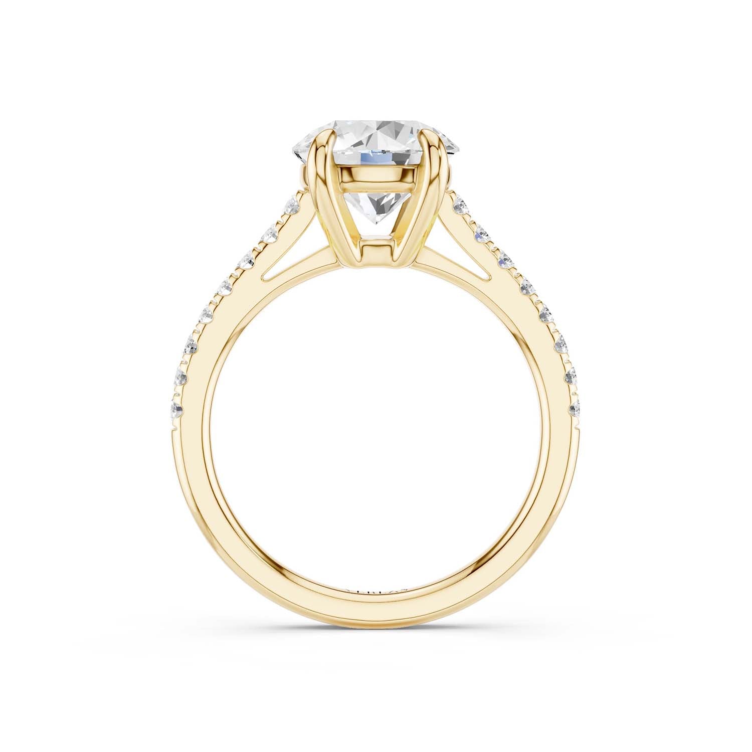 Read MoreA scintillating halo of brilliant diamonds and a striking round center stone result in an unrivaled display of brilliance. The lab-grown engagement ring consists of a petite band with diamonds extending halfway down the shank.