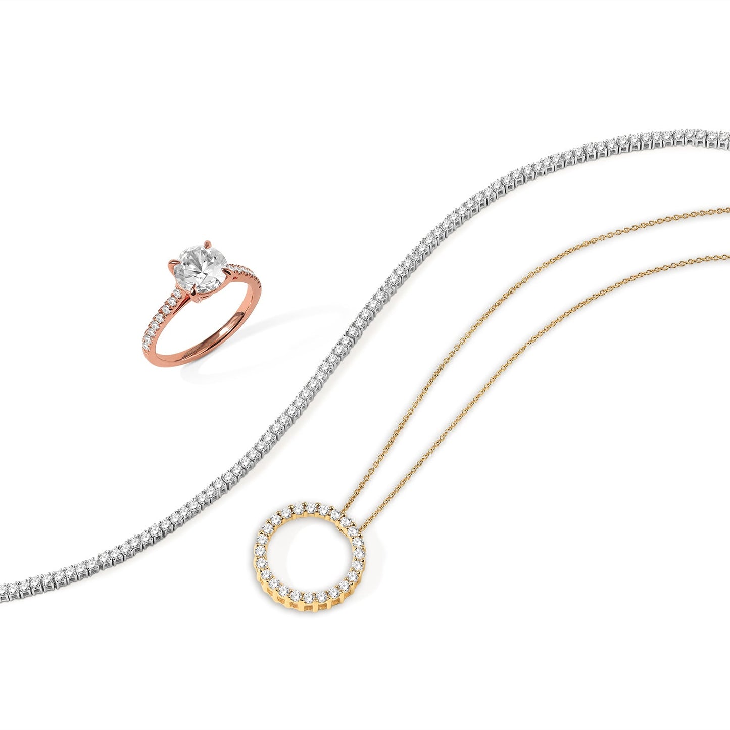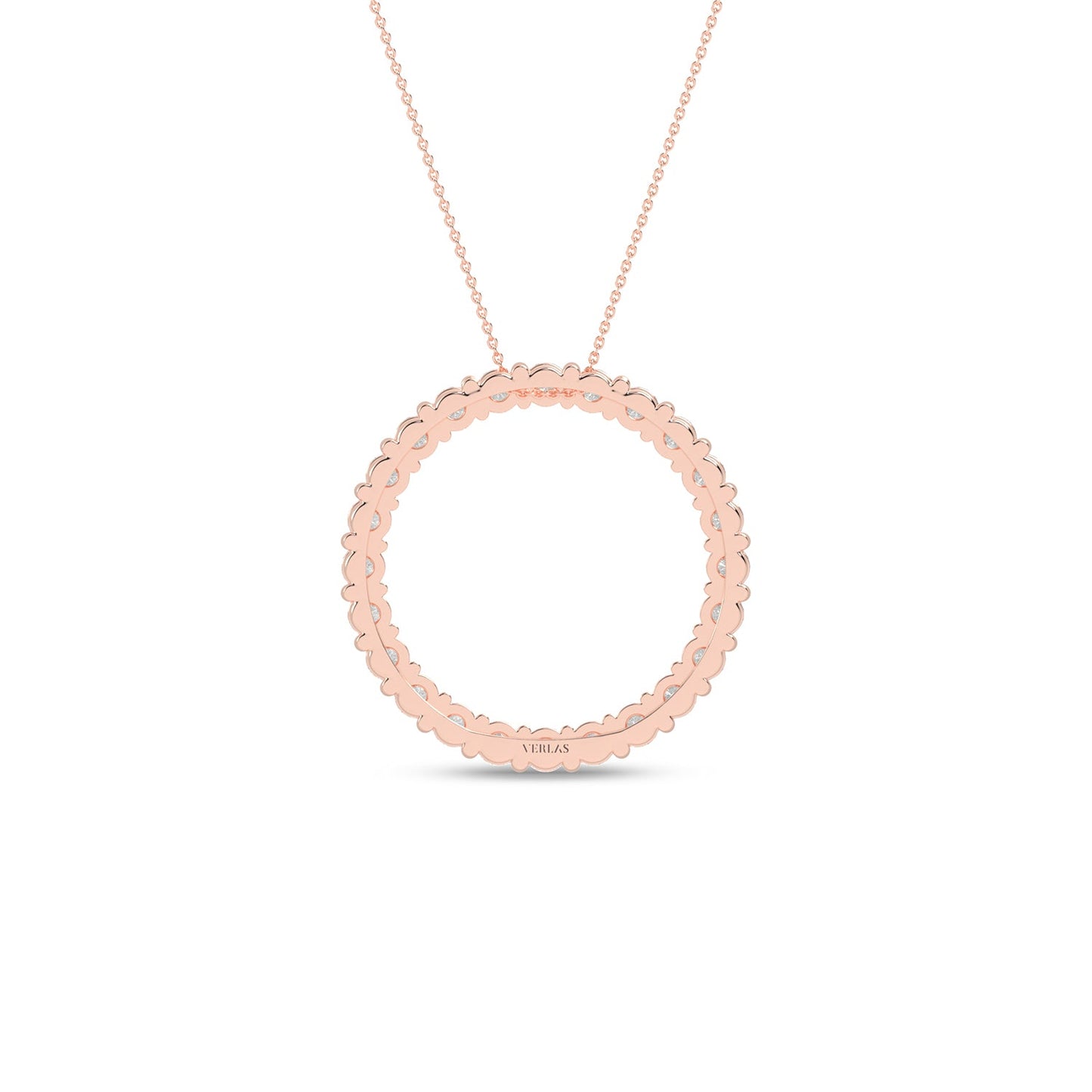 This circular silhouette Pendant with the best lab-made diamonds adds glamour to your every look. A classic shared prong setting forming a splendid silhouette gives an unmatched grandeur to the piece, making lab-grown pendants an excellent gifting option.