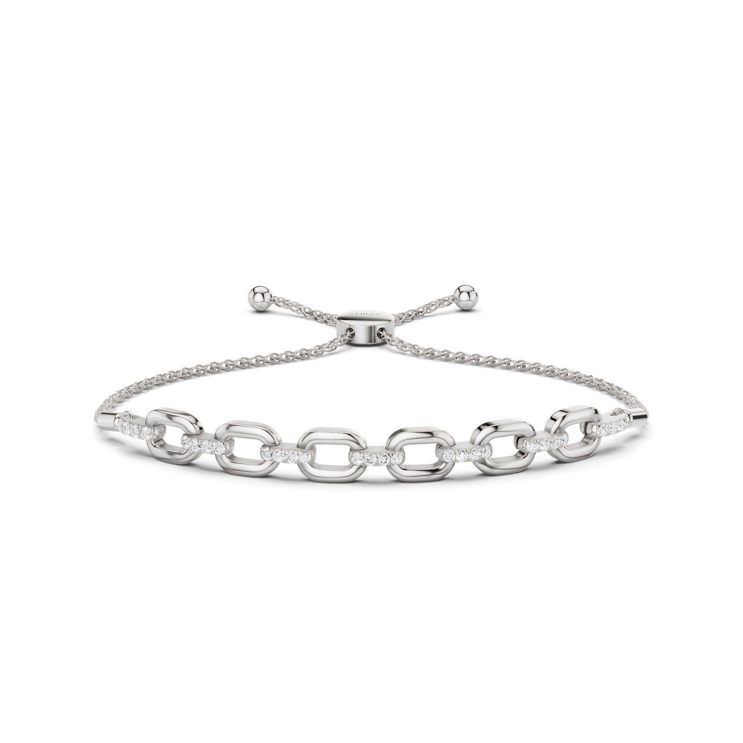 This timeless, elegant bolo bracelet features six links of pave diamonds, creating a stylish appeal. This trendy design makes it an ideal choice for work or play.