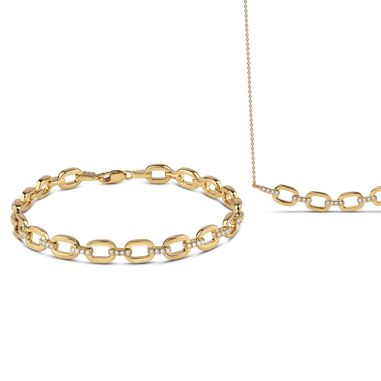 Intertwined in timeless elegance, this bracelet features a trail of sleek diamond links, embodying modern luxury. With its simple, yet contemporary design, it is the perfect addition to any ensemble. Together forever, this bracelet is a symbol of everlasting love and commitment.