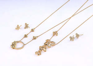 The Triple Butterfly Drop Necklace holds three delicate butterfly silhouettes, each rendered in gleaming gold. From the graceful curves of their wings to the intricate links that connect them, each one is meticulously detailed. Whether you're attending a glamorous gala o. . . Read More
