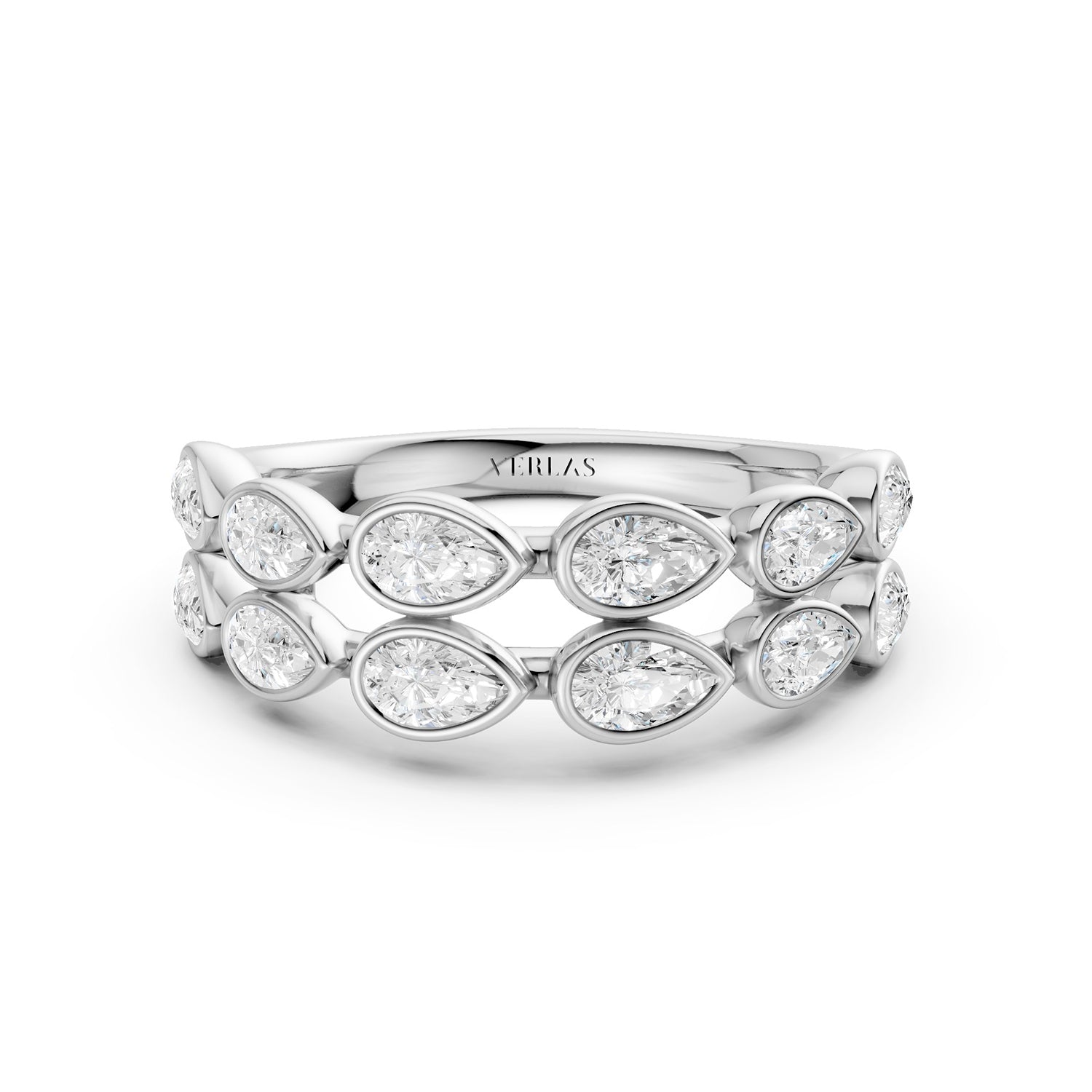 Elevate your style with the Two-Tier Pear Bezel-Set Lab-Grown Diamond Band. Featuring twin rows of pear-shaped lab-grown diamond brilliance in sleek bezels, this sustainable design captures modern elegance with timeless sparkle — perfect for stacking or standing alone.