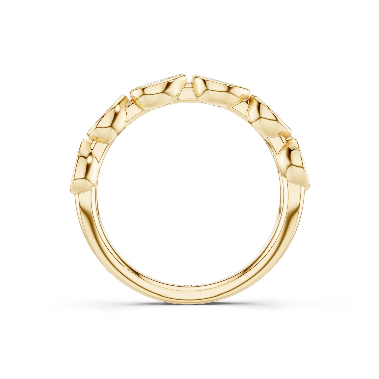 The Two-Tier Bezel-Set Diamond Band redefines traditional wedding jewelry with its layered sophistication. Featuring rows of diamonds arranged in two tiers, it creates a striking statement that stands out while remaining timeless. Perfect for couples seeking a bold symbol of unity, it captures the grandeur of love that grows stronger over time. Explore all the shapes here