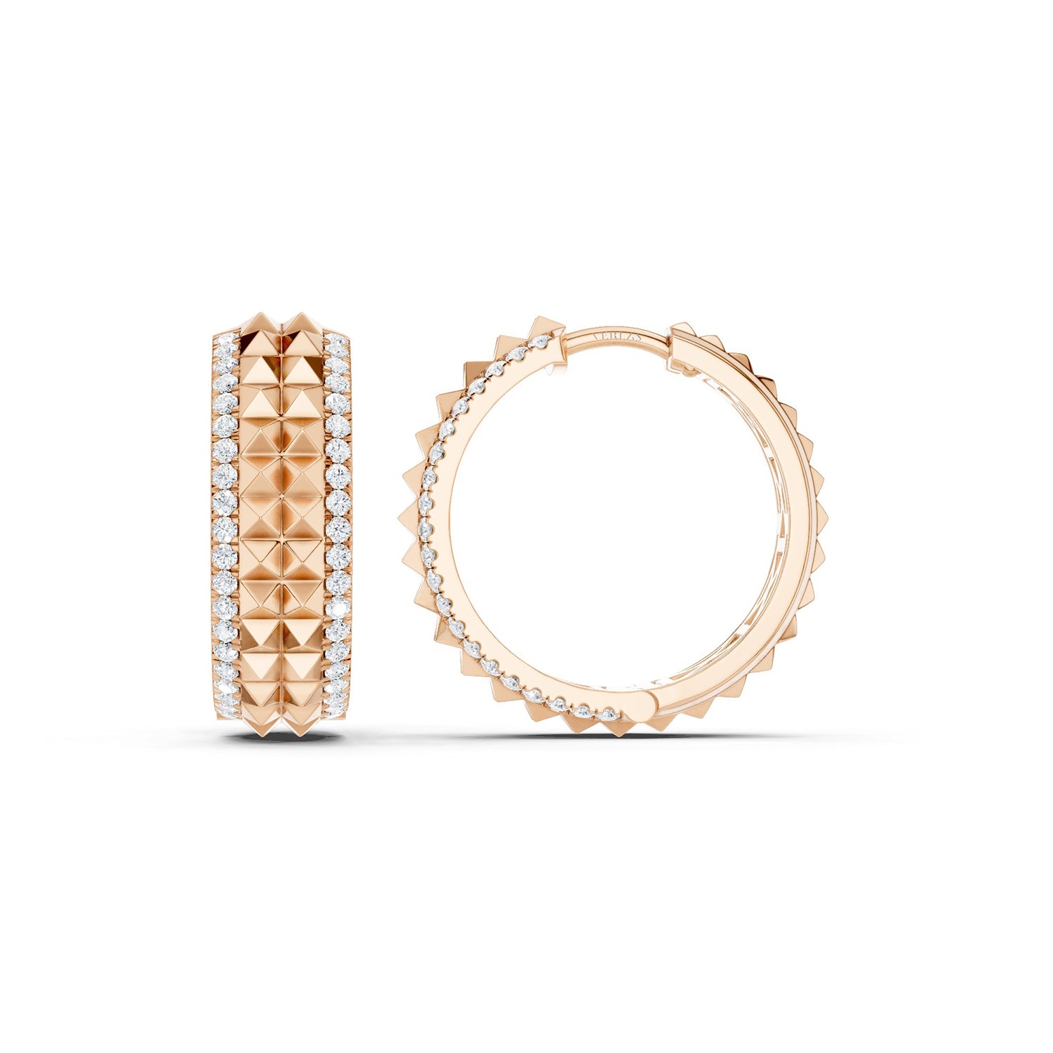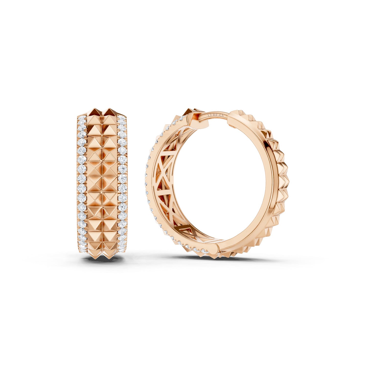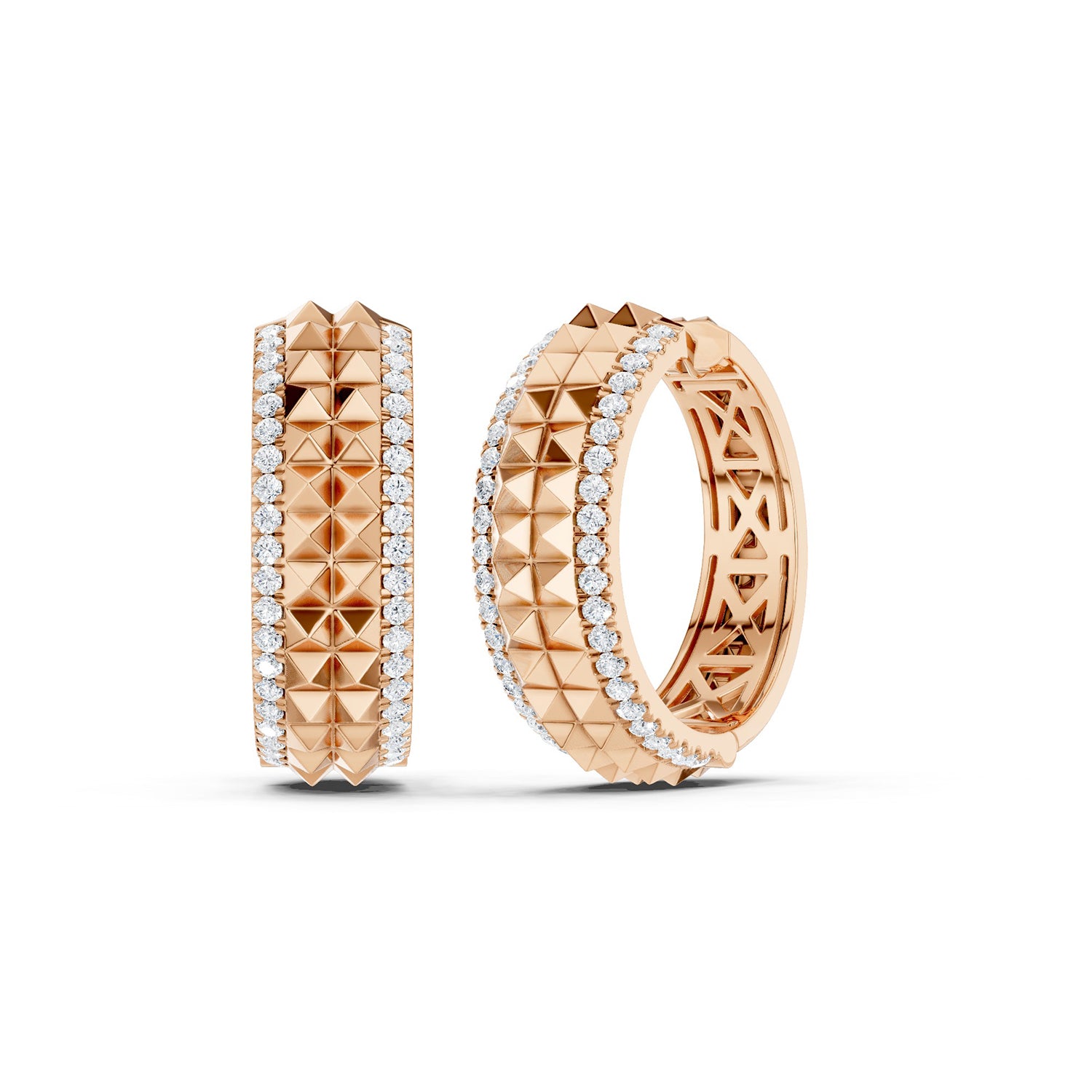 Discover bold elegance with our Two-Tier Pyramid Diamond Huggies, designed to add a touch of modern sophistication to your look. Featuring a central band of striking two-row pyramid motifs that seamlessly wrap around the entire earring, these diamond Huggie hoops are a f. . . Read More