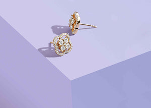 The Viola Blossom Studs from Verlas are a gorgeous pair of earrings that capture the essence of spring. These studs feature a floral design made of solid gold and embellished with round and marquise diamonds. The studs have a secure push-back closure that ensures a comfortable fit. These earrings add a touch of freshness and sparkle to any outfit.