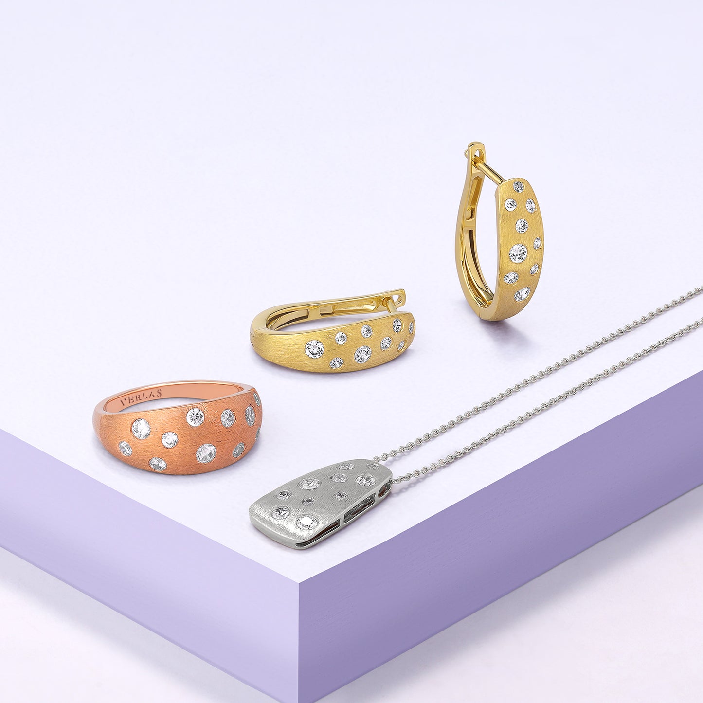 Starlit by Verlas transforms the charm of starry nights into diamond jewelry. This lab-grown diamond collection features a distinct flush setting, where radiant diamonds are embedded in gold to recreate the sparkle of stars. Handcrafted with care and precision, these designs make you shine and steal the show. View all designs